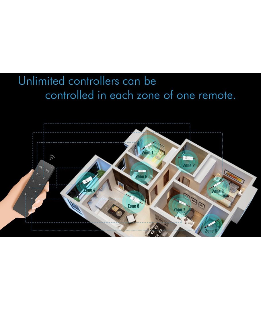 Deze oplossing maakt het mogelijk om je huis te bedienen met één enkele afstandsbediening. Sluit eenvoudig verlichting en andere apparaten aan op de controllers en bedien alles met één afstandsbediening.