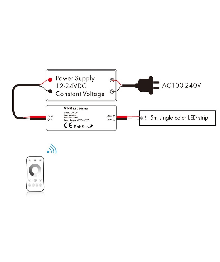 Bedien 12V, 24V, 230V & dimmen, CCT, RGB – alles met dezelfde afstandsbediening.