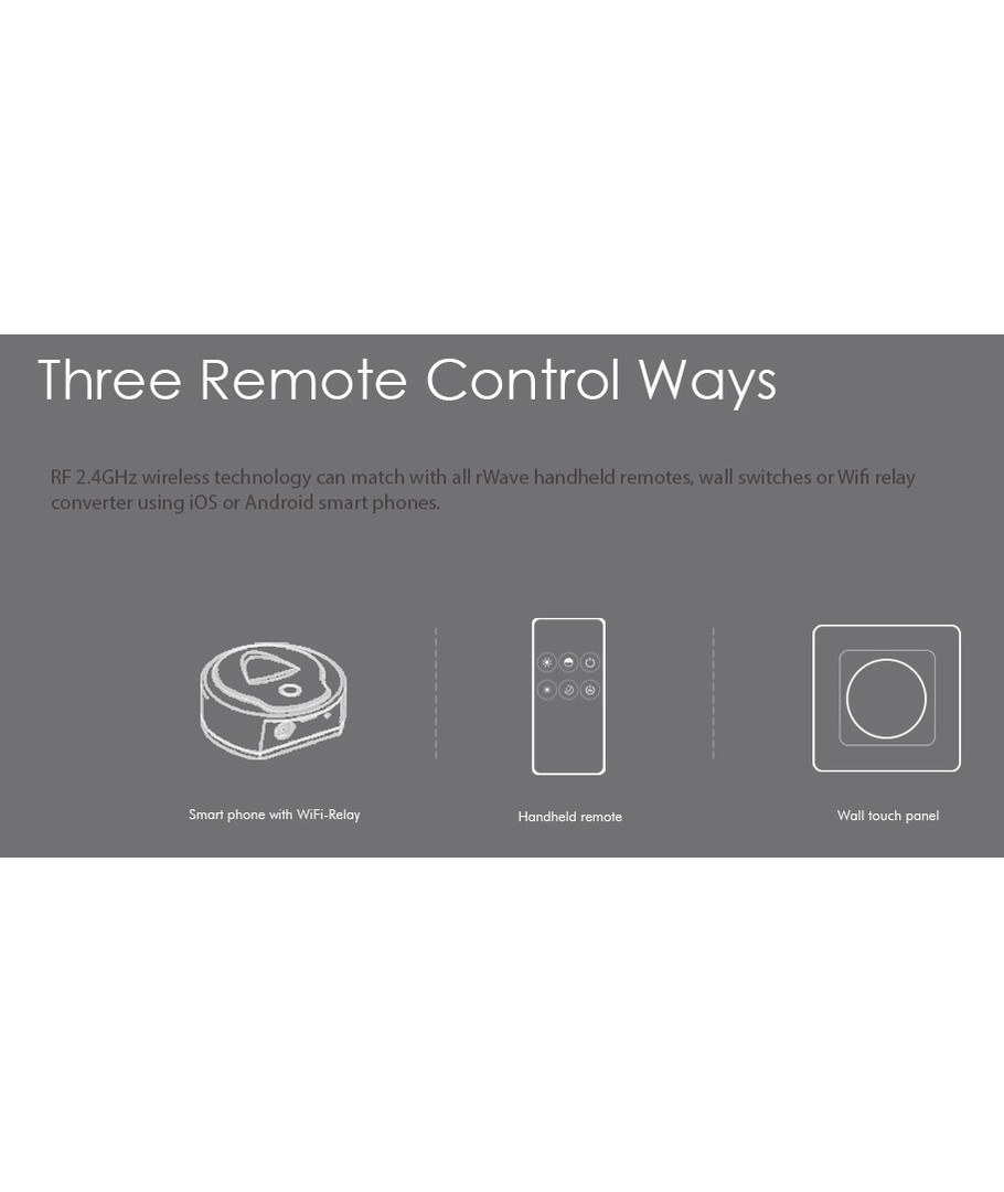 Dit product maakt deel uit van de rWave-serie. Een complete serie dimmers, controllers en afstandsbedieningen die allemaal draadloos samenwerken. De perfecte oplossing voor het draadloze huis.