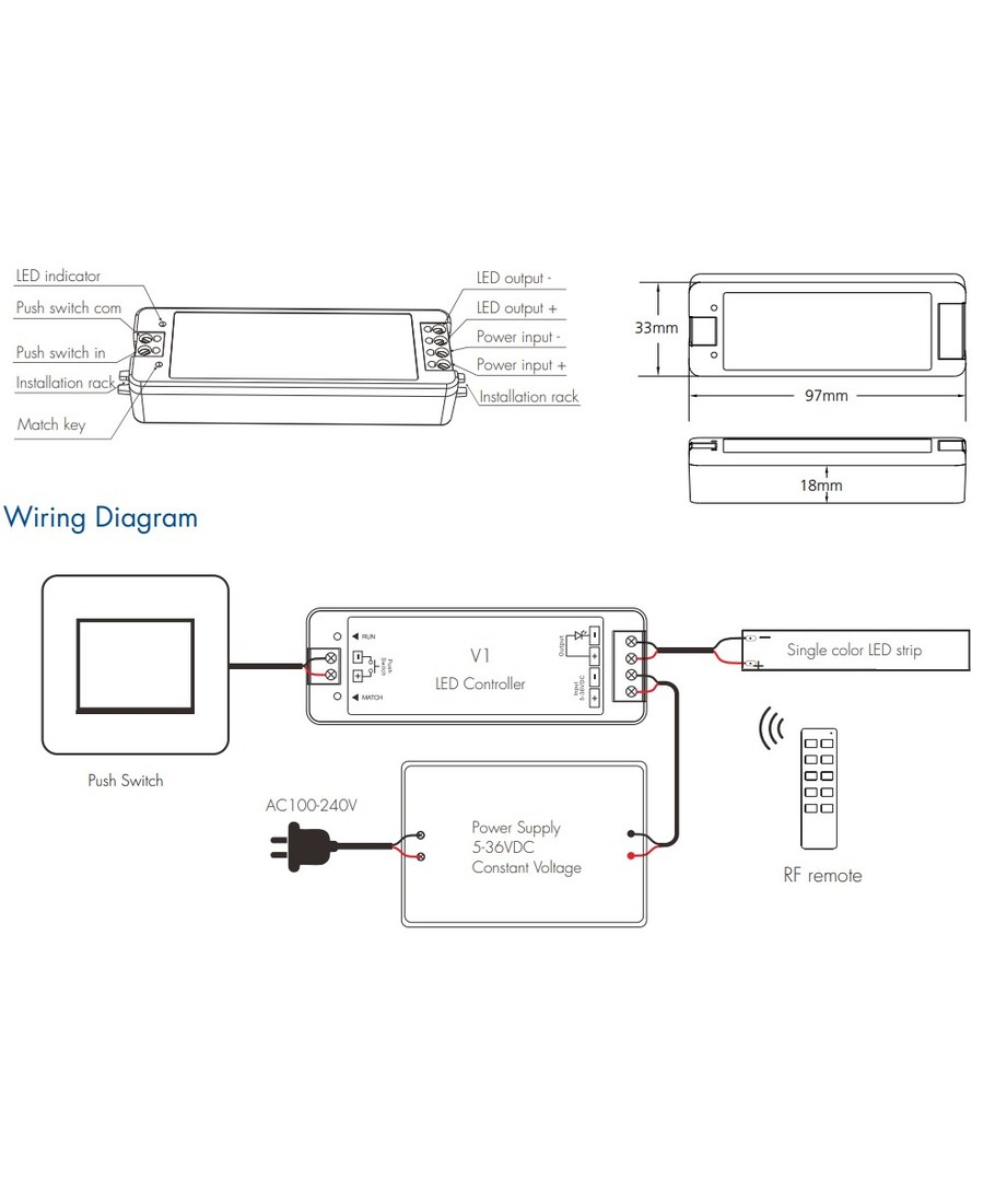 LEDlife rWave V1 dimmer en R6 afstandsbediening voor dimmen - bediening van eendelige LED.