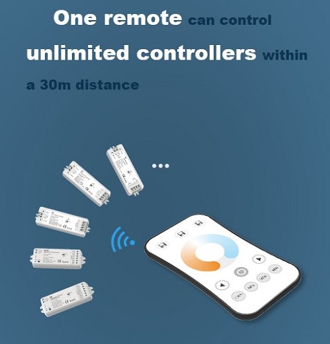 De afstandsbediening kan meerdere rWave dimbare controllers aansturen.