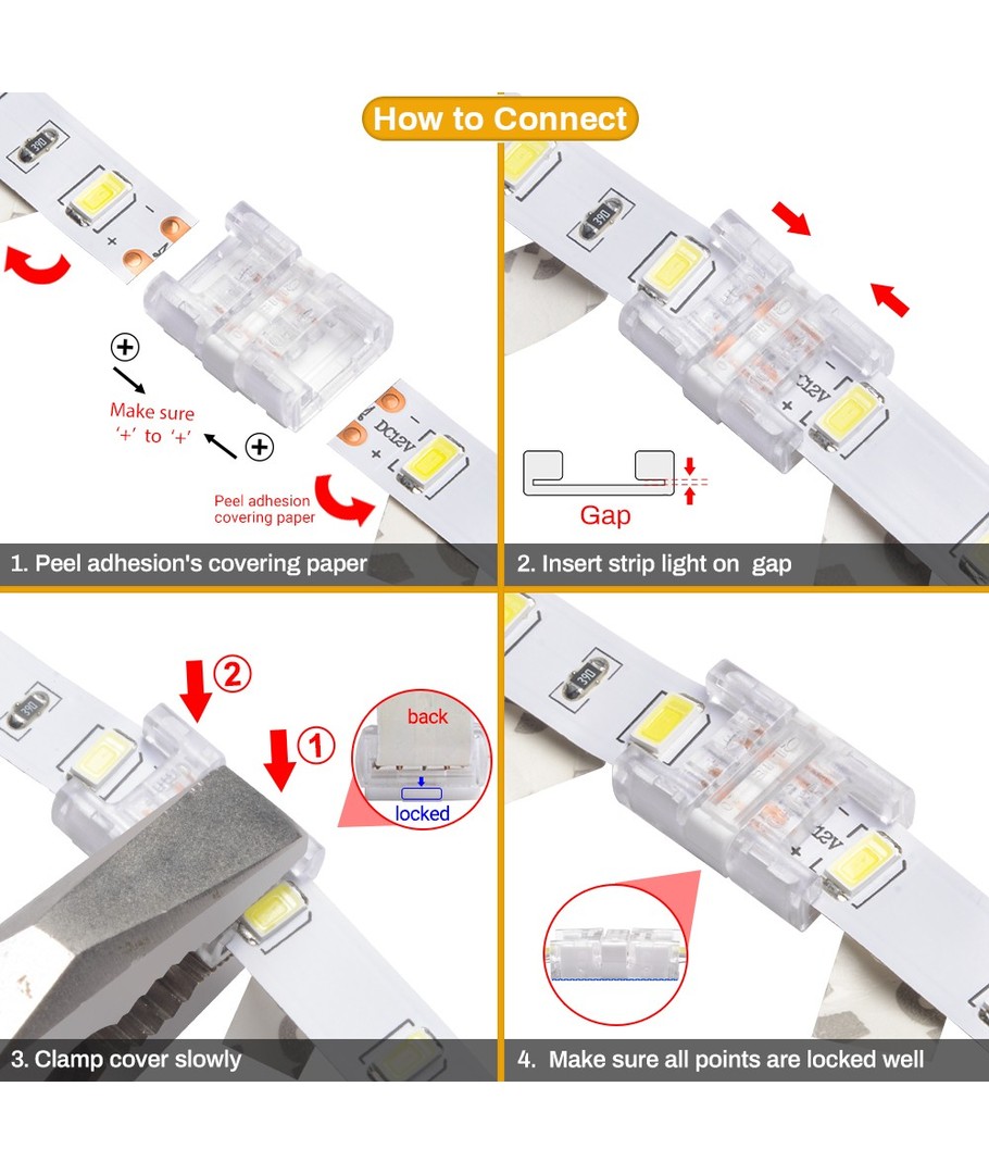 Slanke connector voor LED-strip - 10mm, enkelkleurig, IP20, 5V-24V Uitklappen