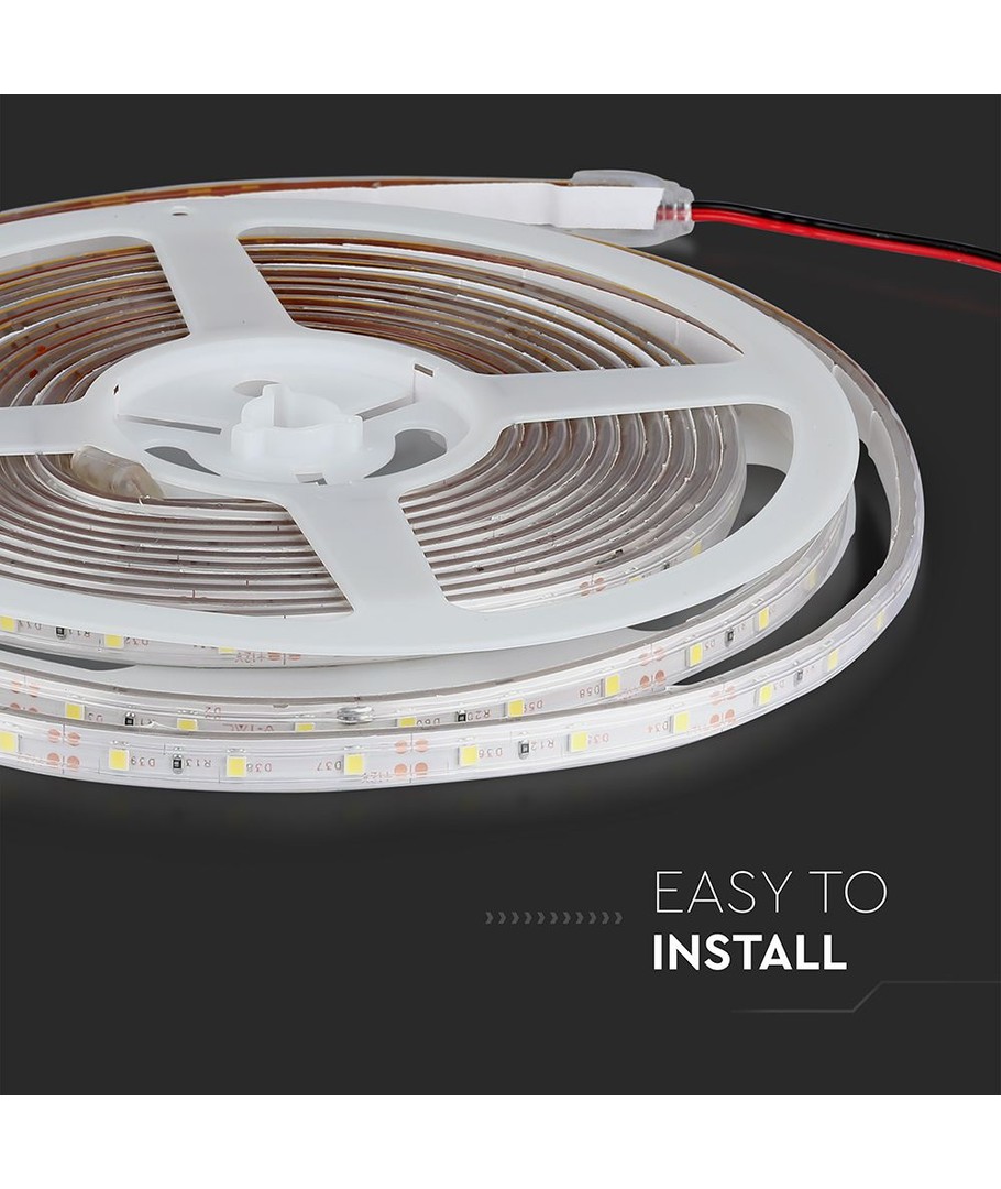 Ervaar flexibele en energiezuinige verlichting met onze 5m spatwaterdichte LED strip, perfect voor zowel binnen- als buitengebruik.