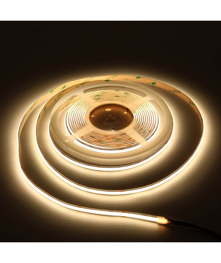 Enkleurige witte COB LED-strip met 320 LED's per meter.