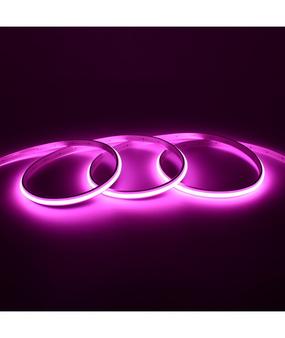 Enkelkleurige roze COB LED-strip met 240 LED's per meter.