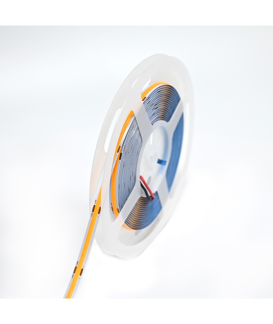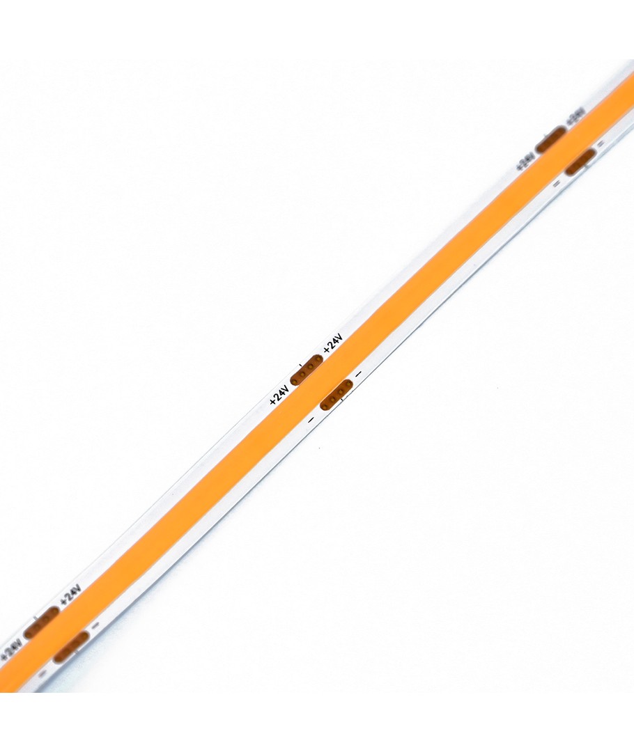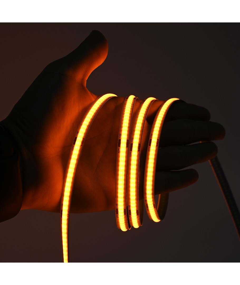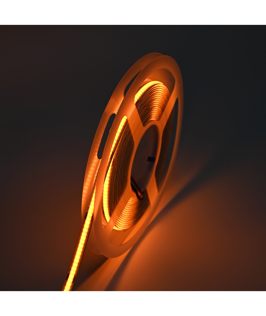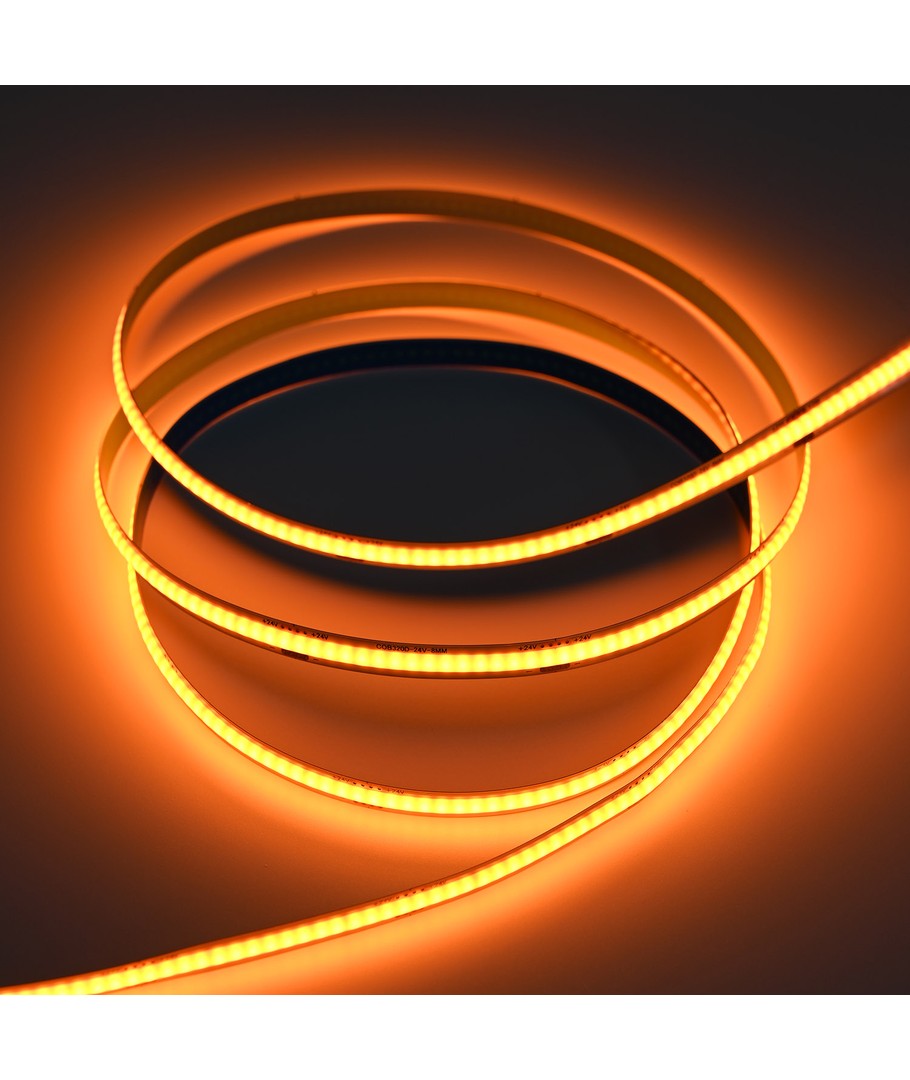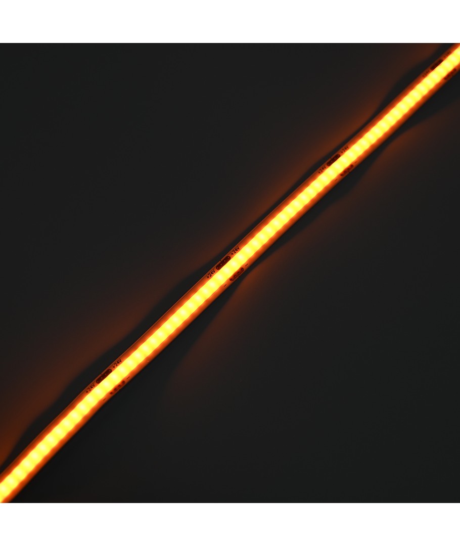 Eénkleurige oranje COB LED strip met 320 LED's per meter.