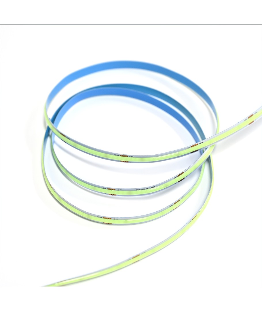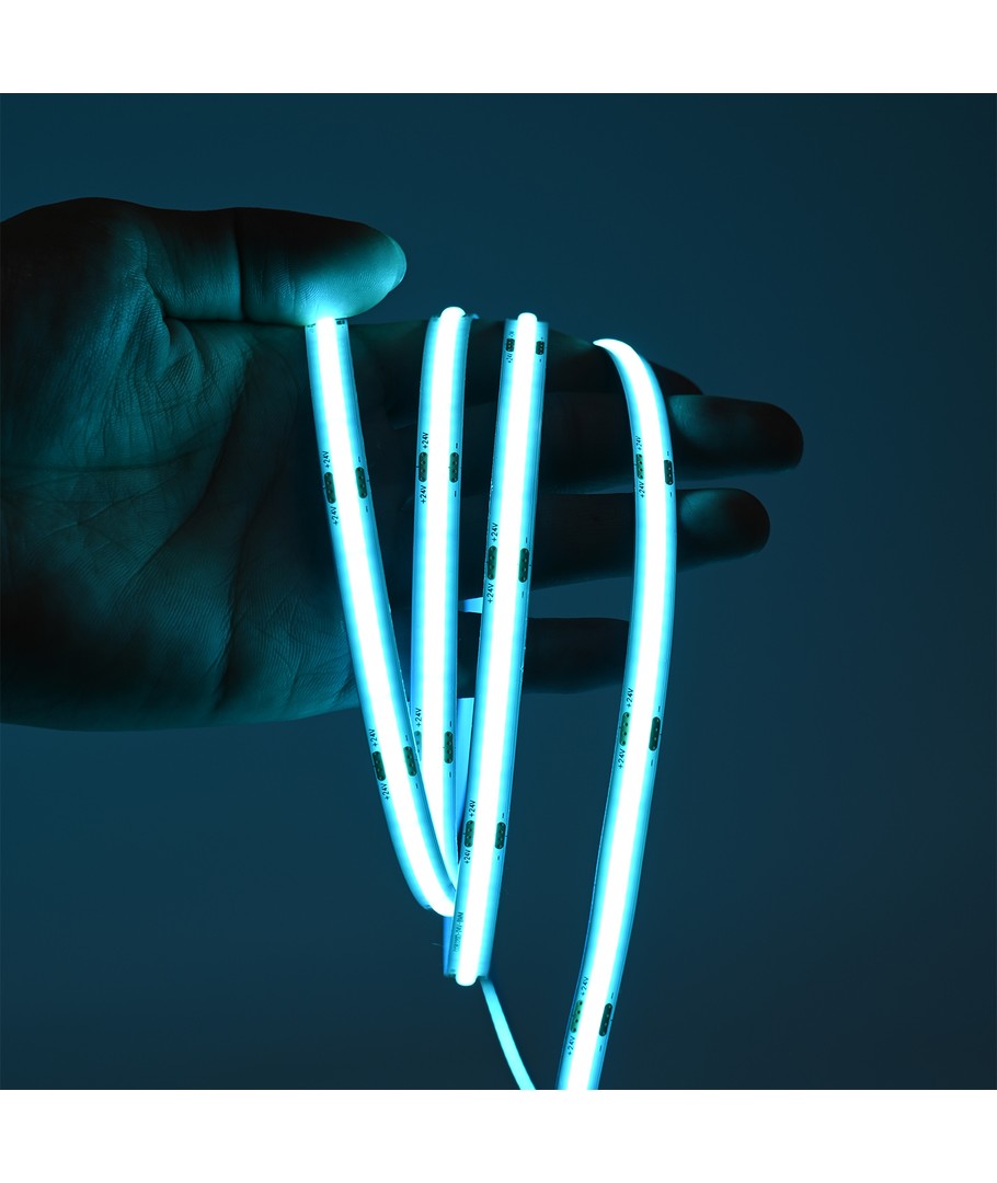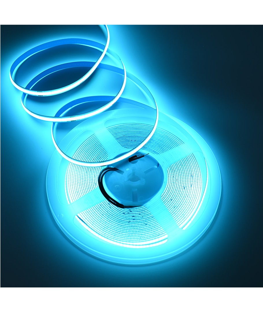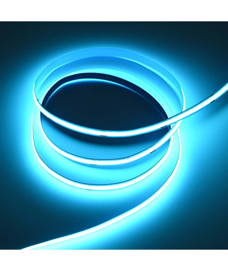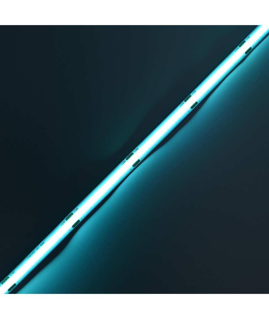 Eénkleurige turquoise COB LED strip met 320 LED's per meter.