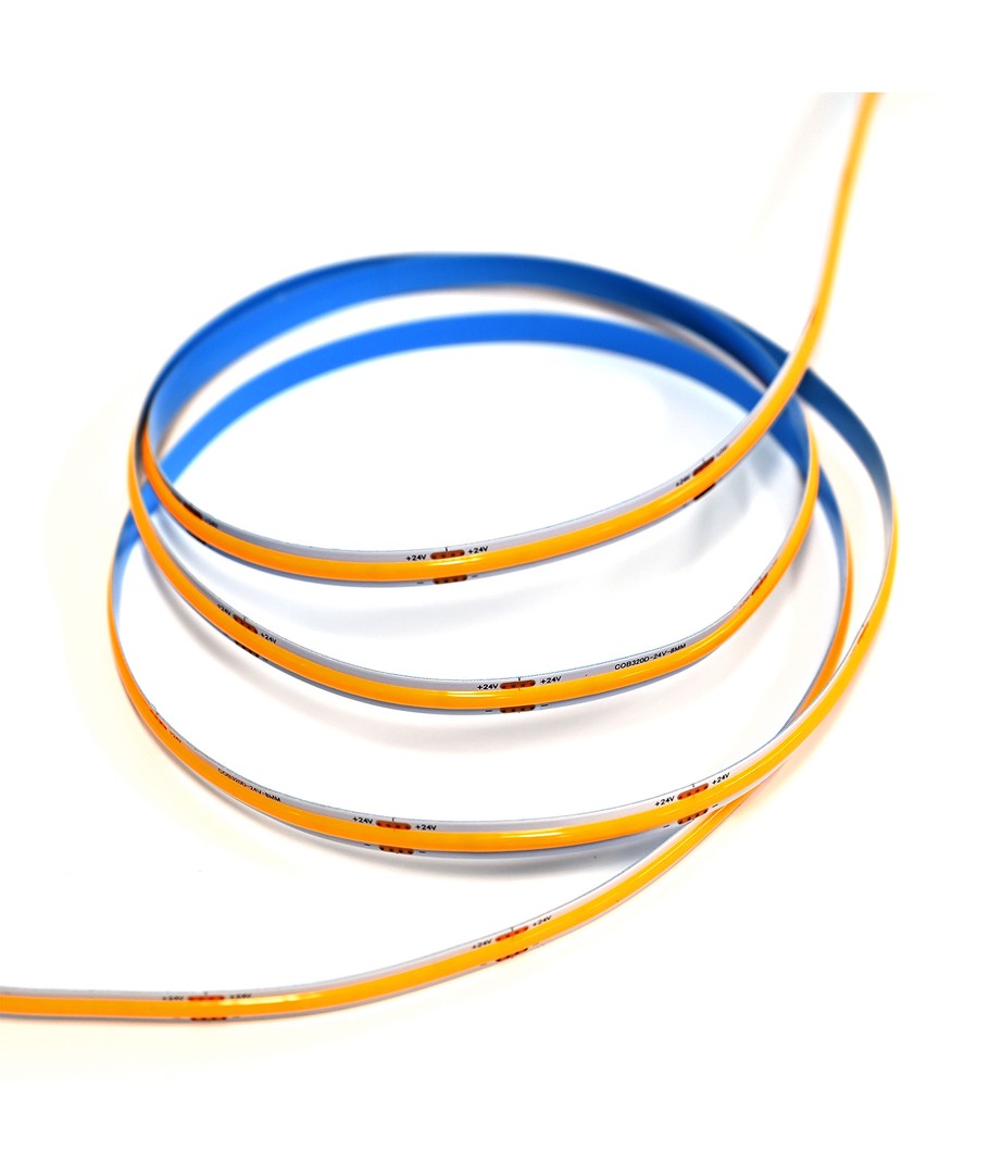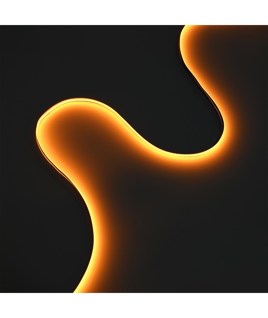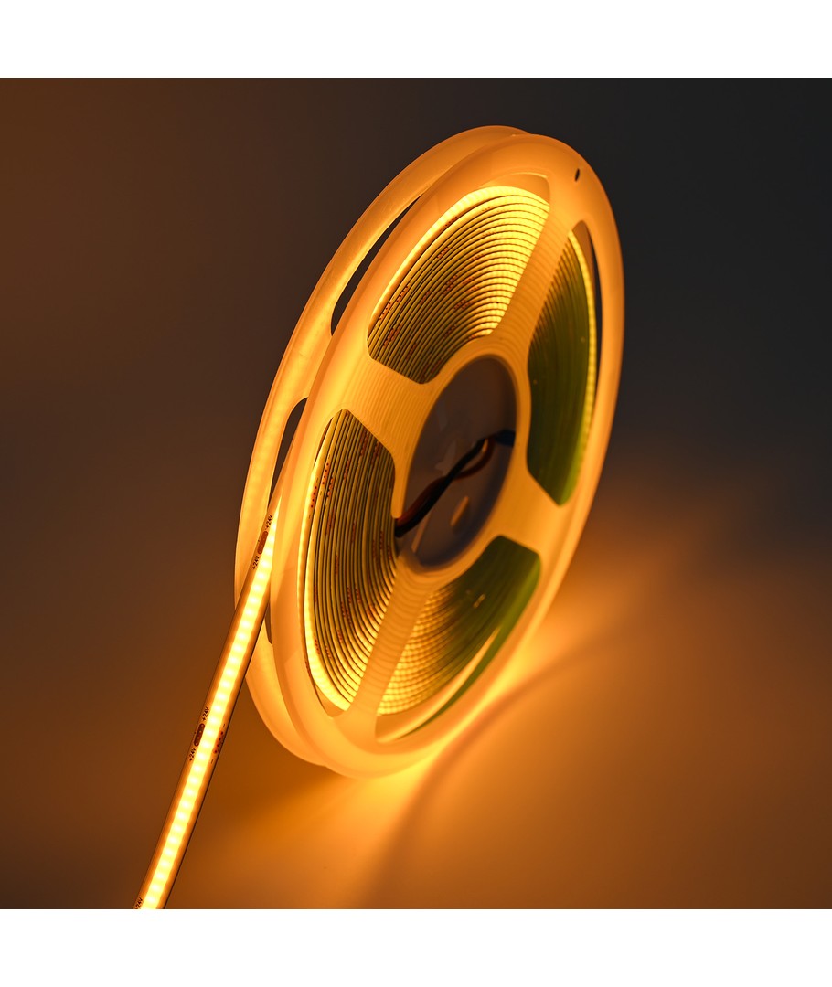 Eénkleurige goudgele COB LED strip met 320 LED's per meter.