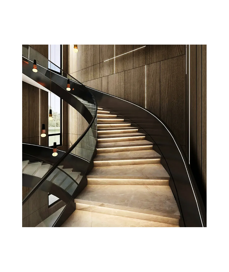 Complete oplossing die een gezellige en mooie verlichting langs uw trap biedt.