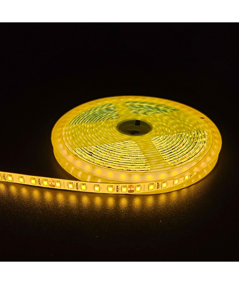 Creëer een sfeervolle verlichting met deze gele 10W/m LED-strip van 5 meter, die een helderdere kleur heeft dan RGB.
