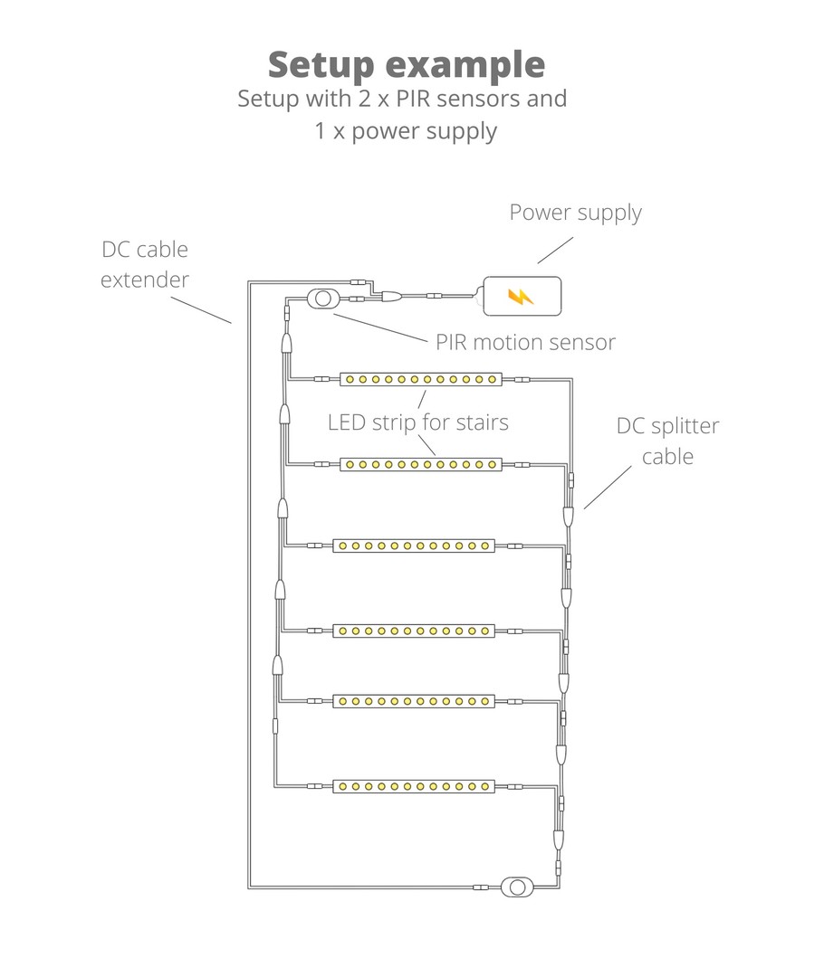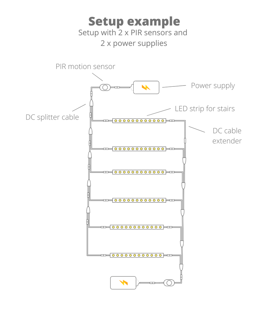 Wordt geleverd met mannelijke / vrouwelijke stekkers, zodat ze direct op de transformator kunnen worden aangesloten en in serie kunnen worden verbonden.