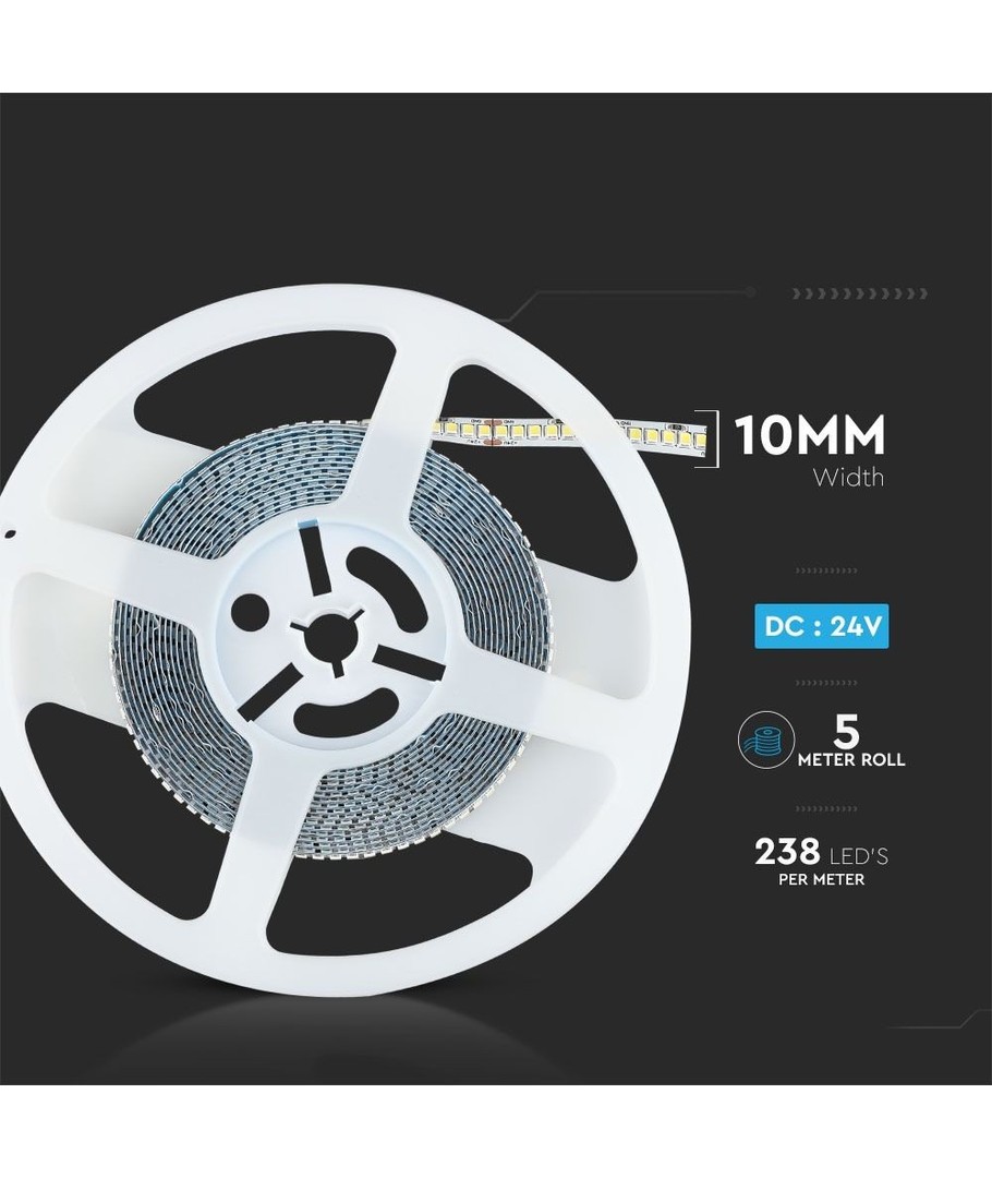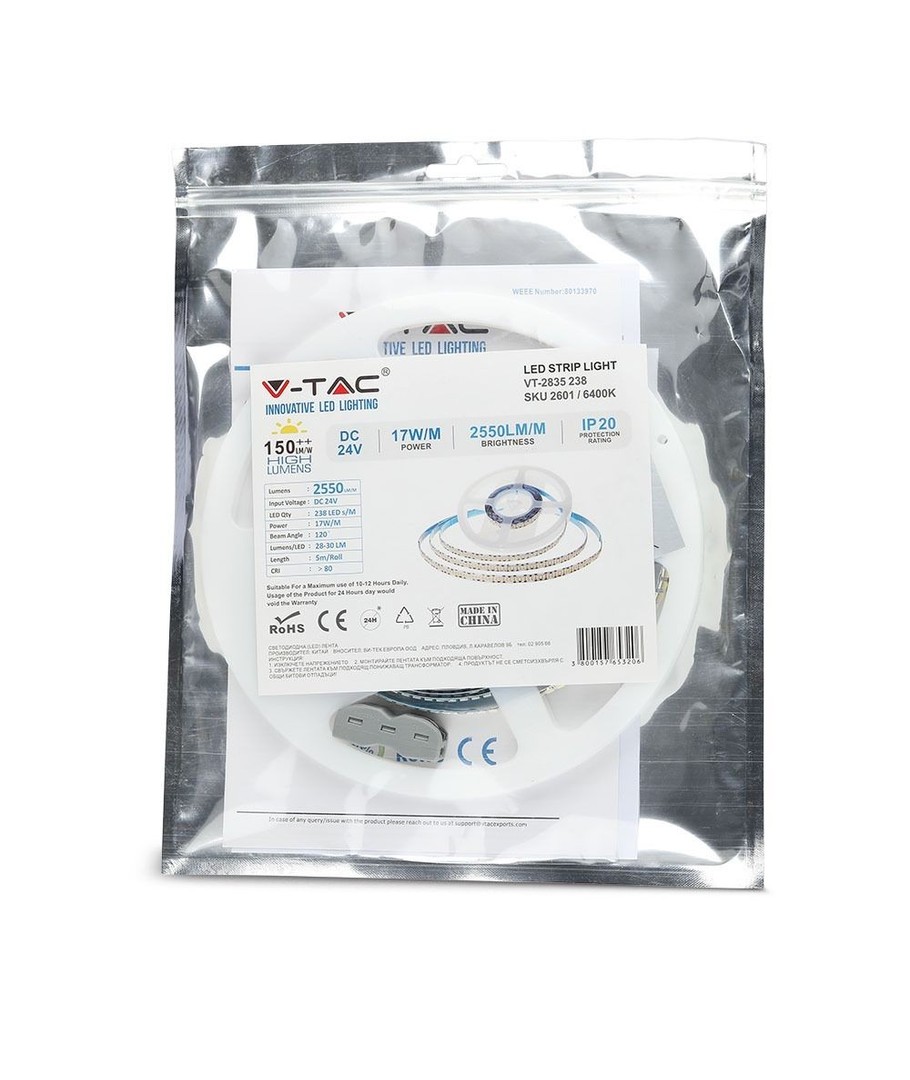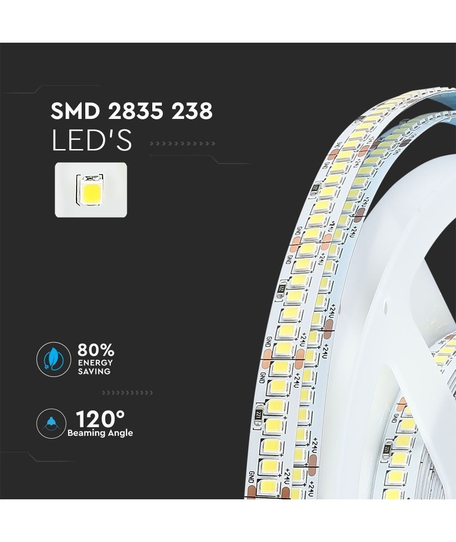 Deze LED strip is ontworpen voor wie een hoge prestatie en kwaliteit wenst in hun verlichtingsprojecten. Met een vermogen van 17W per meter en een indrukwekkende lichtopbrengst van 2550 lumen per meter, levert hij een krachtige lichtoutput die voldoet aan de behoeften van een breed scala aan toepassingen.