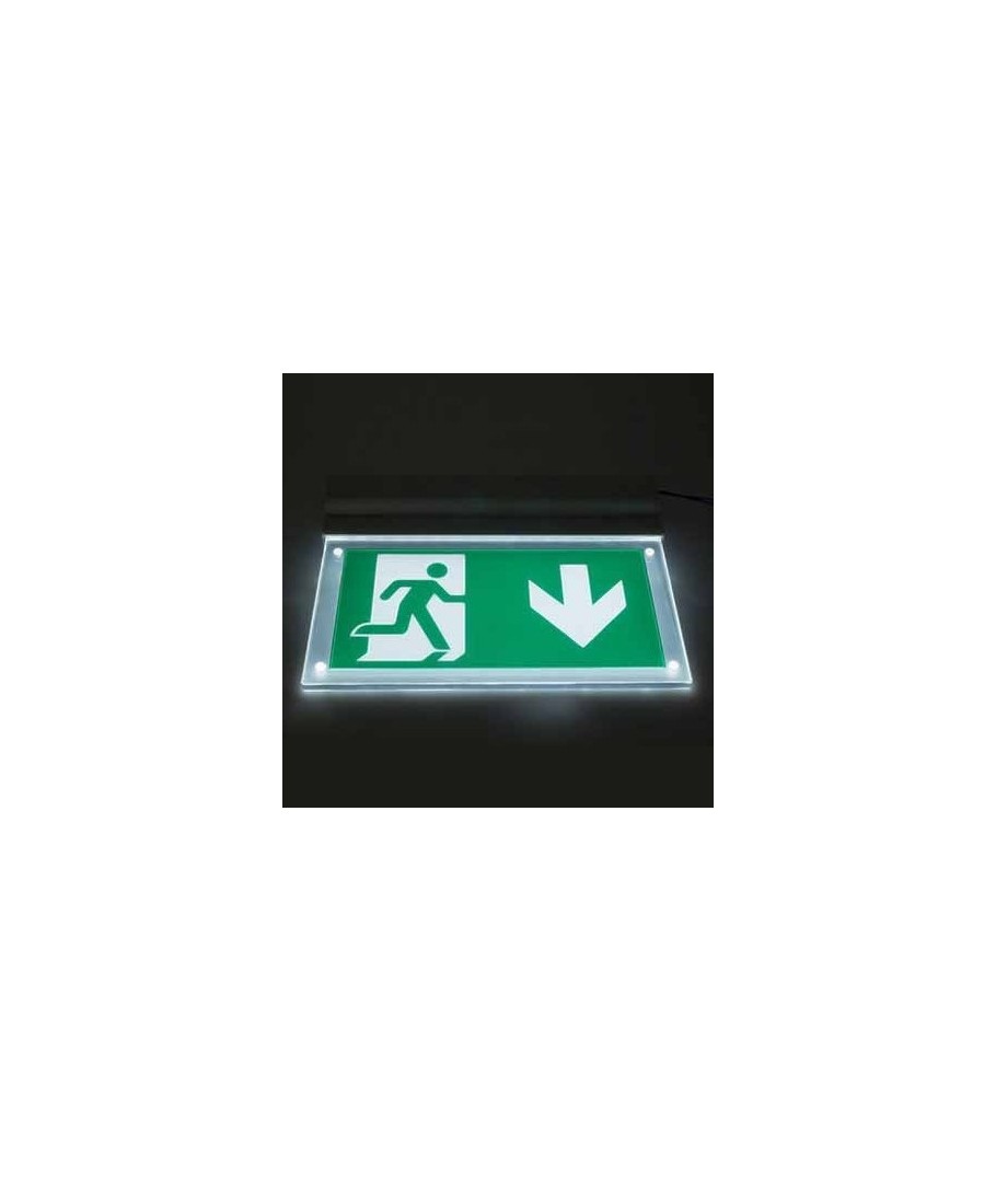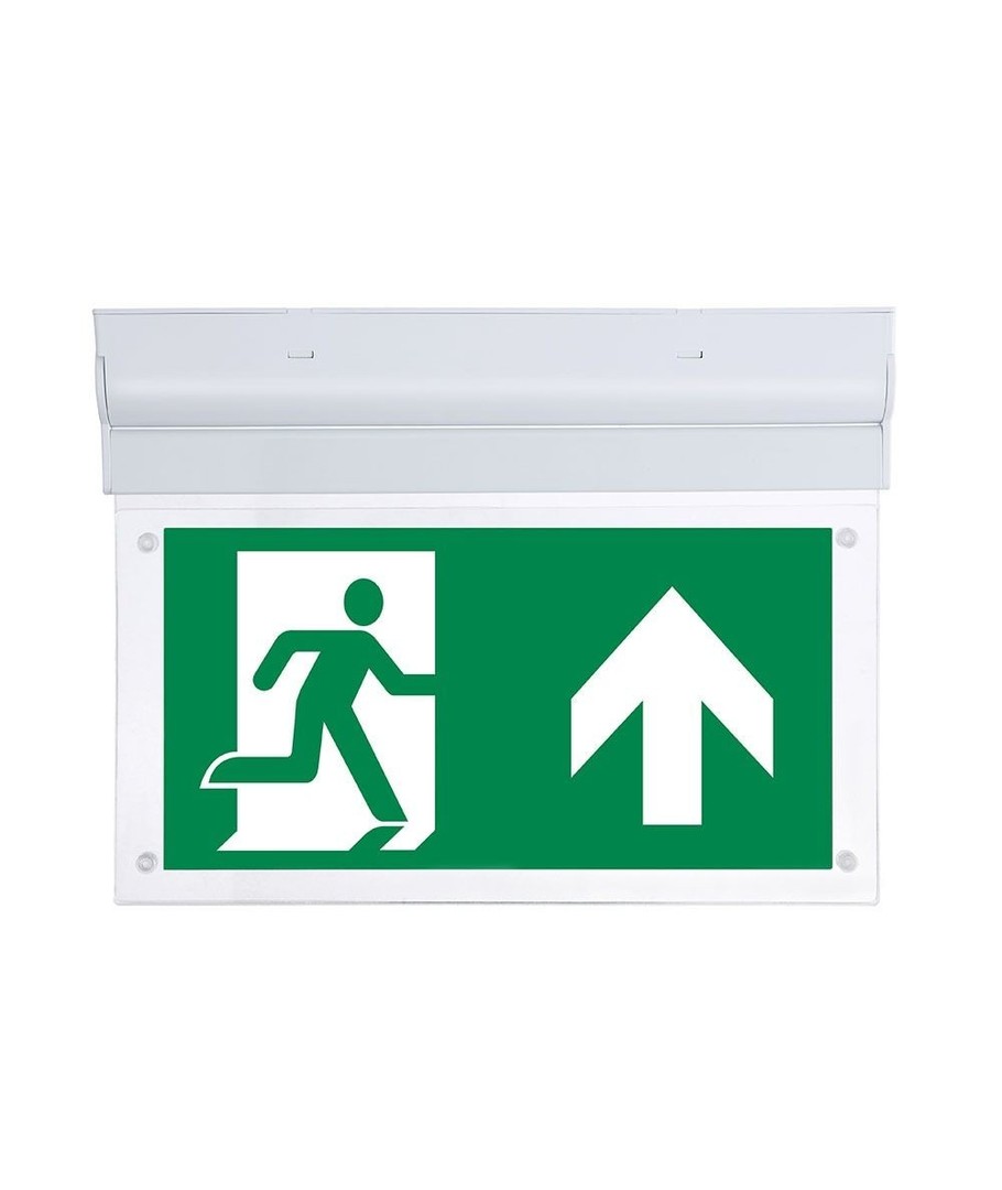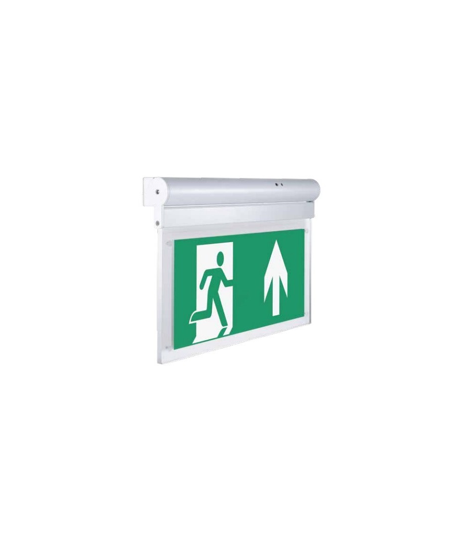 Ontworpen voor eenvoudige installatie aan zowel wand als plafond, wordt dit bord rechtstreeks aangesloten op een 230V voeding. Met afmetingen van 380 x 51 x 195 mm is het groot genoeg om van afstand zichtbaar te zijn, maar discreet genoeg om in elke omgeving te passen.