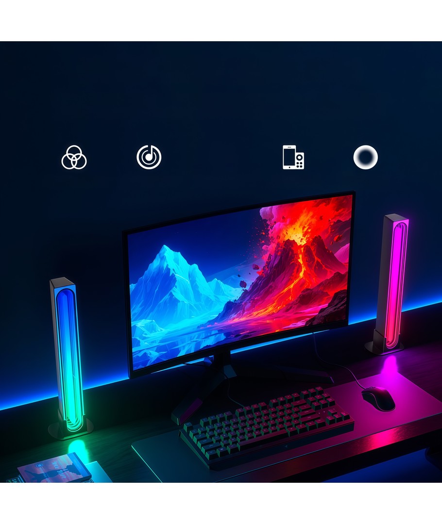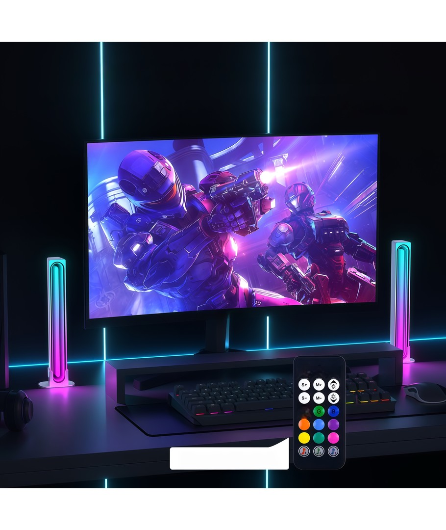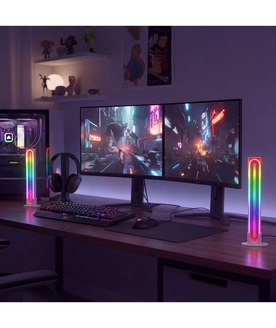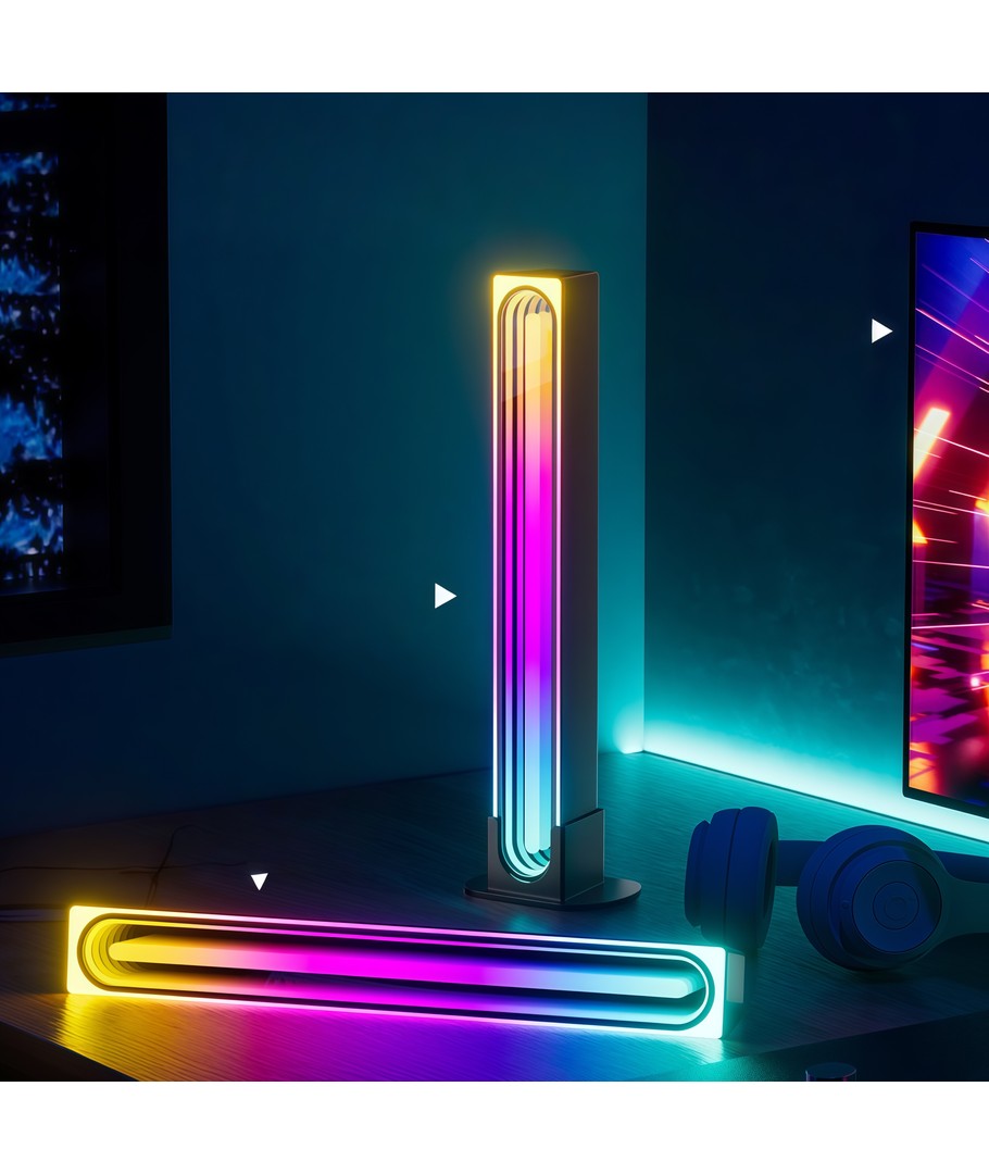 Ervaar een wereld van kleur en sfeer met onze set van 2 RGBIC infinite ambient light bars in het wit, die geavanceerde technologie combineren met een stijlvol design.