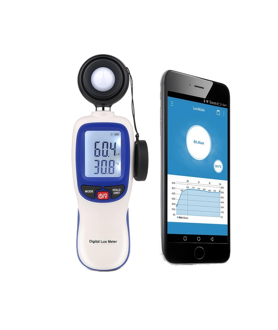 Meet de hoeveelheid licht met de mogelijkheid om de meetgeschiedenis op te slaan in de app op je smartphone.