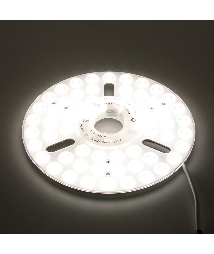 De LED-inzet wordt eenvoudig aangesloten op een 230V voeding en dankzij de compacte afmetingen van 25 x Ø230 mm is het gemakkelijk te installeren in bestaande armaturen. Het past perfect in ruimtes waar ruimtebesparing en efficiënte verlichting prioriteit hebben.