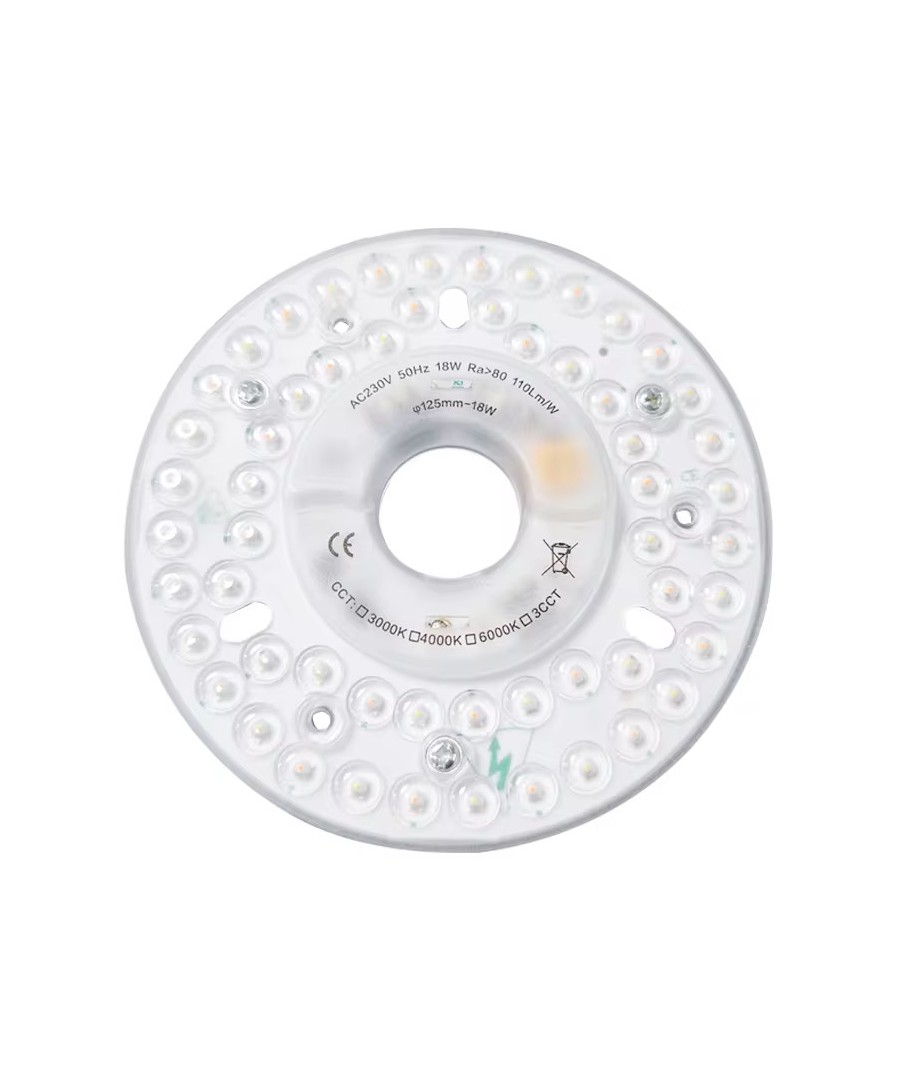 De LED-inzet wordt eenvoudig aangesloten op een 230V voeding en dankzij de compacte afmetingen van 25 x Ø230 mm is het gemakkelijk te installeren in bestaande armaturen. Het past perfect in ruimtes waar ruimtebesparing en efficiënte verlichting prioriteit hebben.
