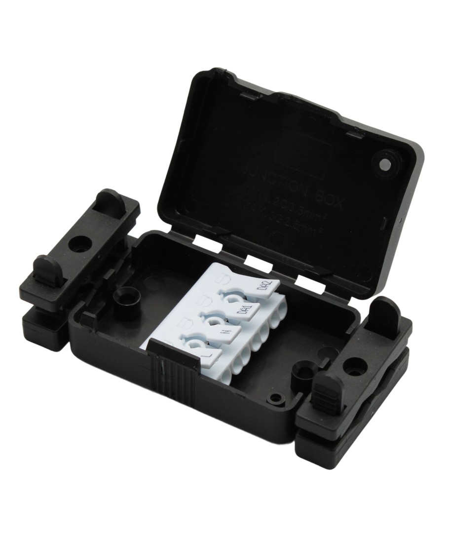 Slimme verbindingsdoos met klemstrook en ontlasting.