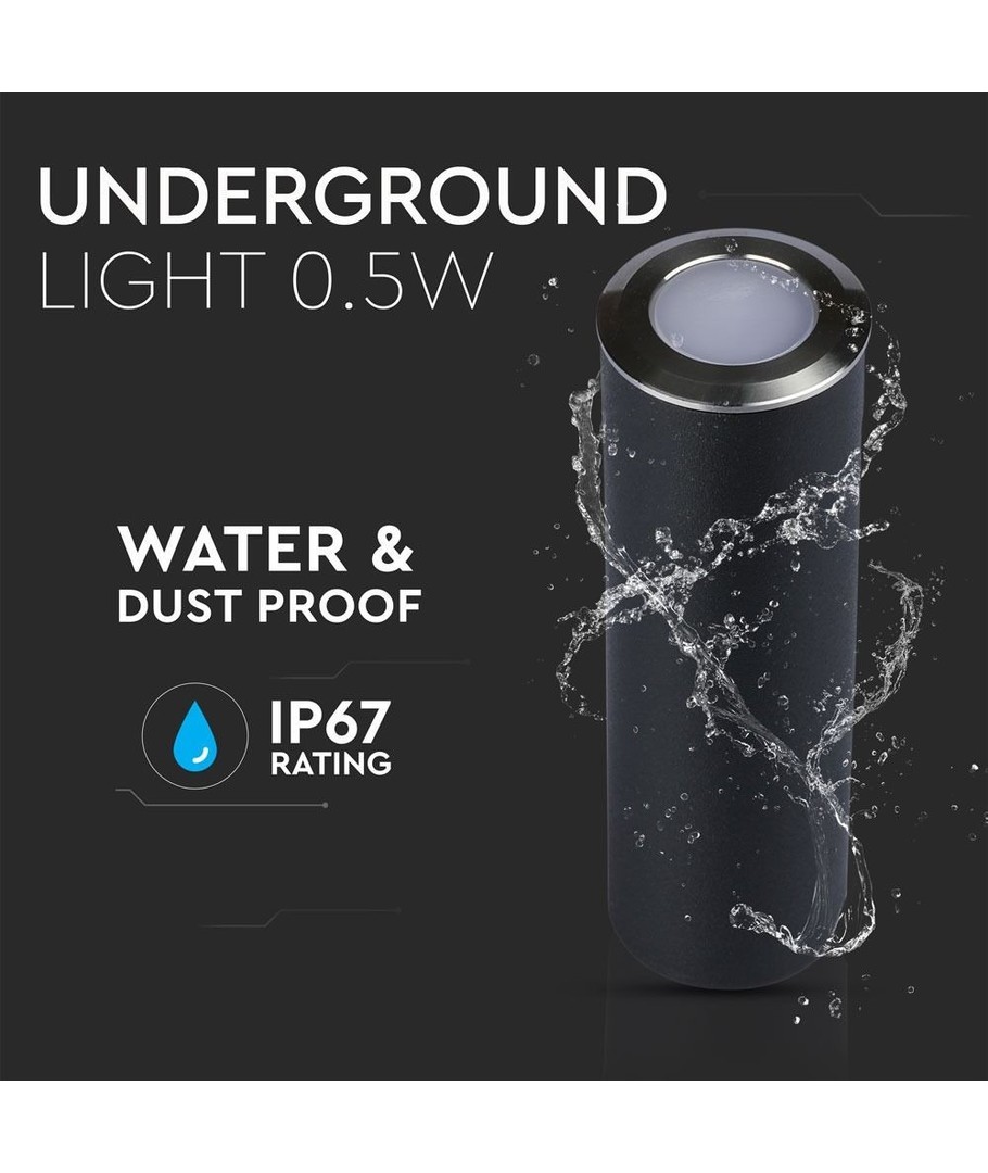 De V-Tac inbouwspot meet 82 x Ø26 mm, waardoor hij compact is en gemakkelijk te integreren in verschillende soorten installaties. Hij is ontworpen om weersomstandigheden te weerstaan dankzij de IP67 waterdichtheid. Hoewel hij niet bedoeld is voor continu onderdompelen, kan hij zonder problemen regen en vochtige omgevingen aan, wat zorgt voor een lange levensduur en blijvende prestaties.