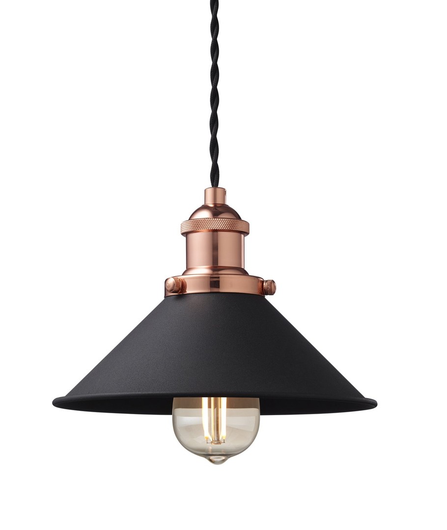 Klassieke hanglamp met de naam NEKSØ van Nielsen Light in de kleur Mat Zwart en Koper. Perfect voor vele doeleinden, zoals boven het keukenblad of de eettafel.