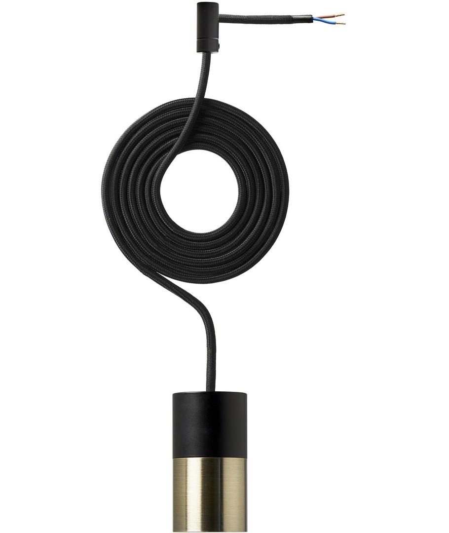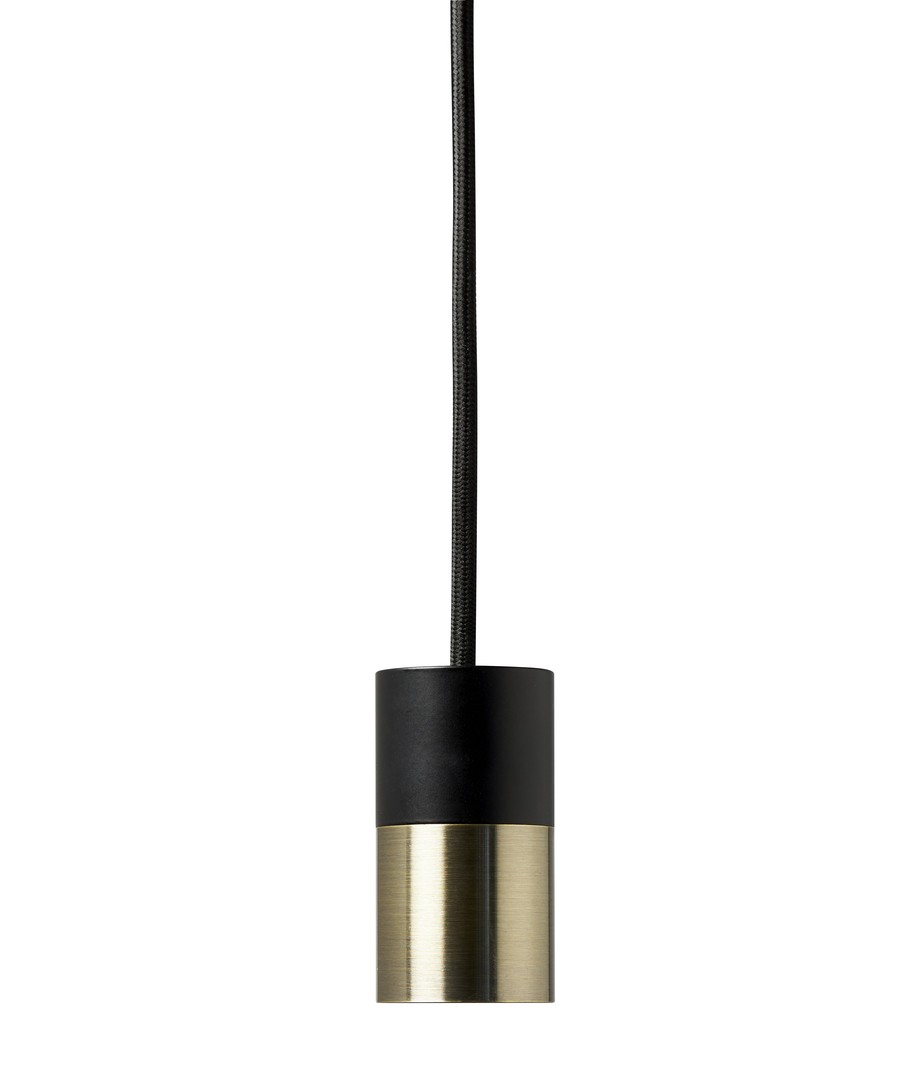P8 pendelset volgens elegante eenvoud, met een metalen fitting in zwart en messing.