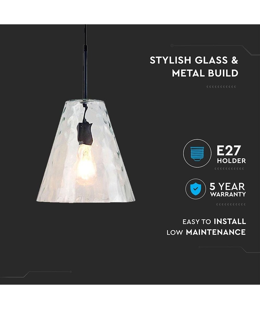 De V-Tac moderne hanglamp combineert een stijlvolle uitstraling met praktische bruikbaarheid, waardoor het een ideale keuze is voor moderne woningen. Het kegelvormige glas zorgt voor een esthetisch aantrekkelijke effect, dat zowel uw ruimte kan verbeteren als aanvullen. Met een diameter van Ø27 cm en een hoogte van 280 mm heeft de lamp een ideale maat die in verschillende interieurstijlen past, van minimalistisch tot Scandinavisch.
