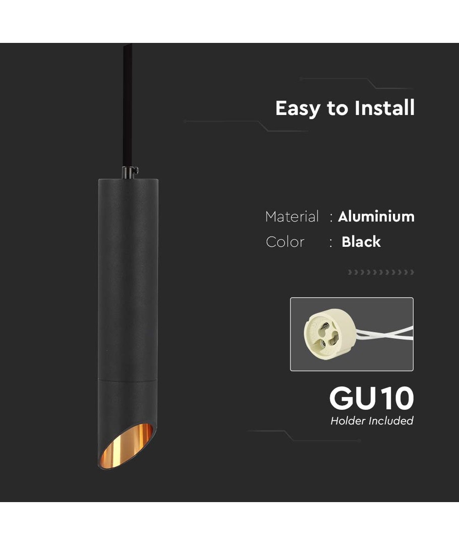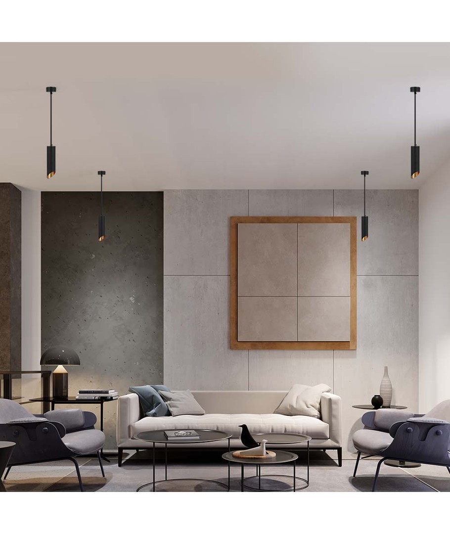 Creëer een elegante en moderne uitstraling in uw huis met deze prachtige GU10 hanglamp. Met zijn slanke zwart gecoate afwerking en eenvoudige ontwerp past deze lamp perfect in elk interieur, of het nu in de woonkamer, keuken of op kantoor is.
