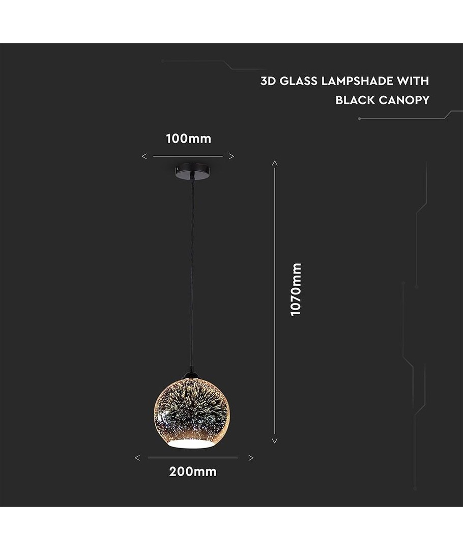 Versier je huis met stijl en geniet van een combinatie van design en functionaliteit met de V-Tac 3D Glas Hanglamp. Maak het het centrale punt in je huis en ervaar het verschil in sfeer.| Afmetingen | |