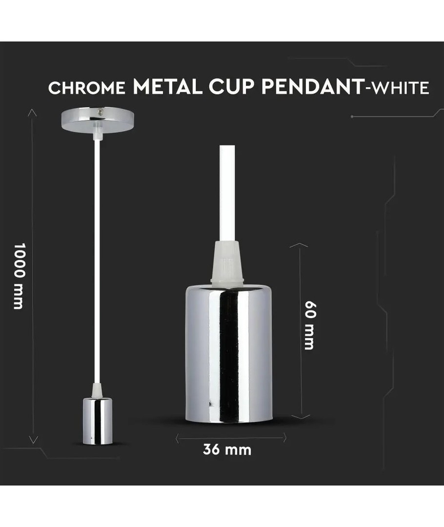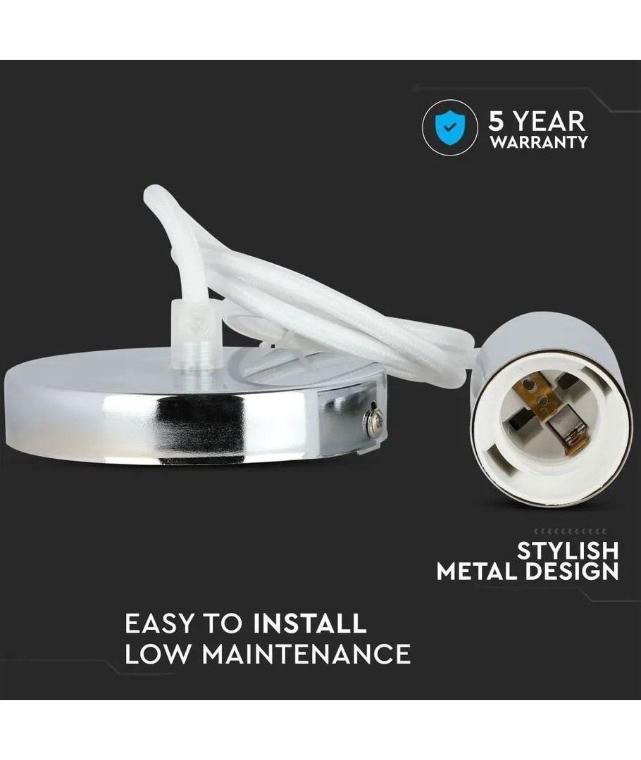 De V-Tac lampfitting in chroom met witte kabel is de ideale keuze voor wie op zoek is naar een stijlvolle en functionele oplossing voor hun verlichtingsbehoeften. De robuuste kwaliteit en veelzijdige toepasbaarheid maken het een waardevolle aanvulling op vele verschillende verlichtingsomgevingen.