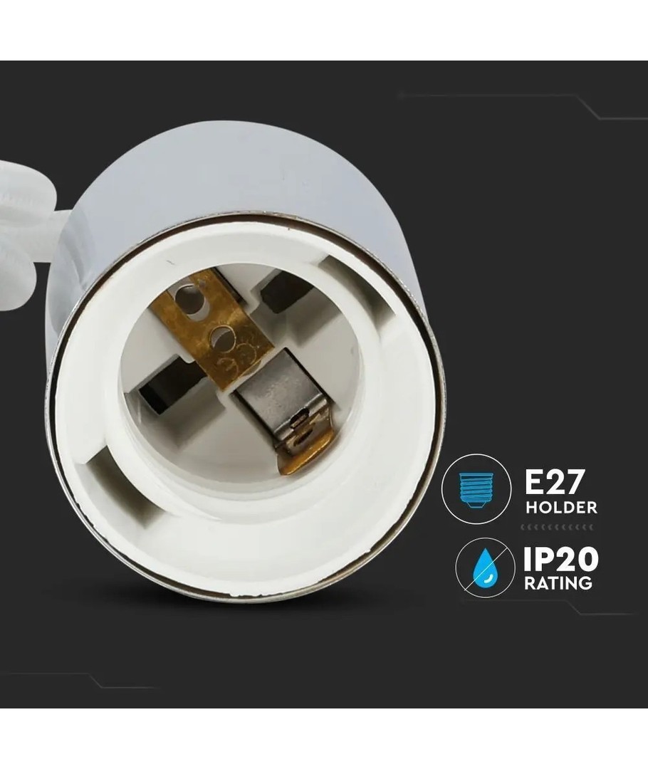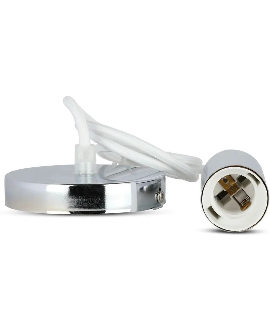 Ervaar een combinatie van stijl en functionaliteit met deze V-Tac lampfitting, perfect ontworpen om elke verlichtingsopstelling aan te vullen. Met een moderne chroom metalen afwerking en een witte kabel, geeft deze fitting een elegante uitstraling die gemakkelijk kan worden aangepast aan verschillende interieurstijlen.