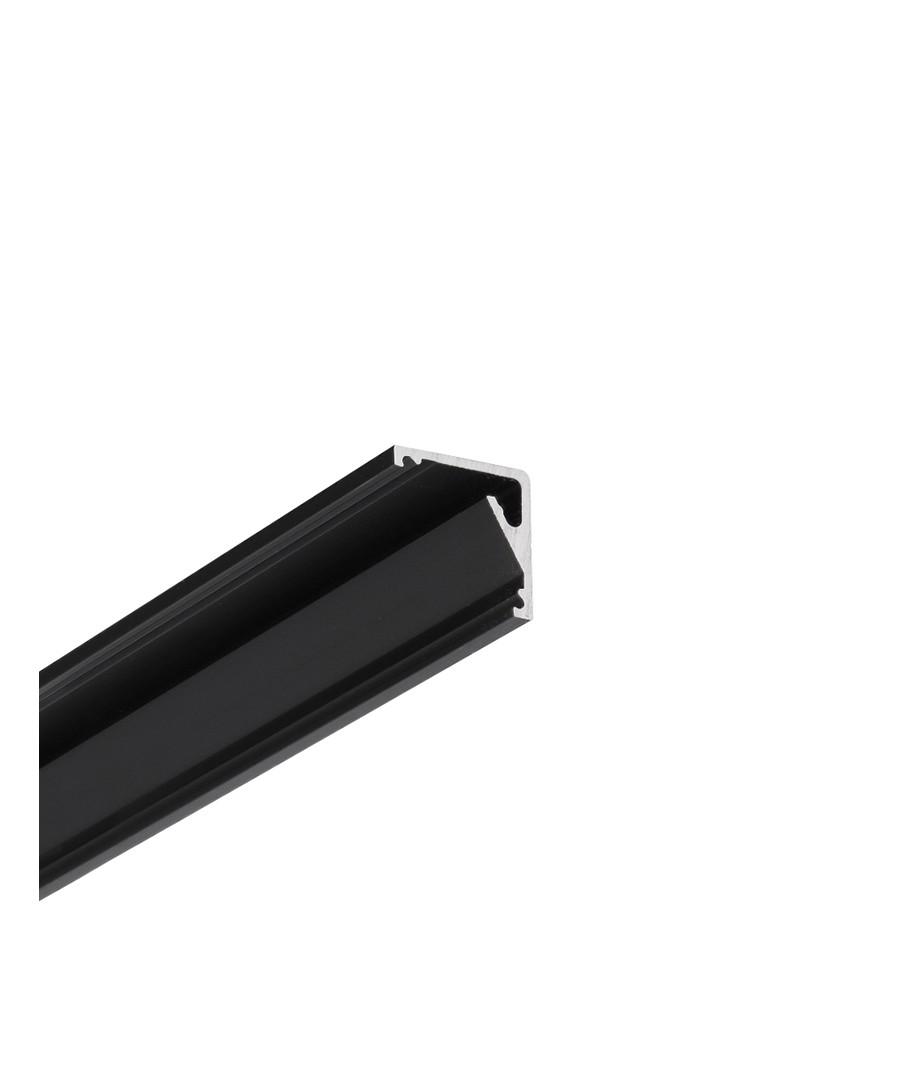 1m aluminiumprofiel CABI12 E is een zwart geanodiseerd aluminiumprofiel voor hoekmontage, ontworpen om LED-strips te huisvesten.