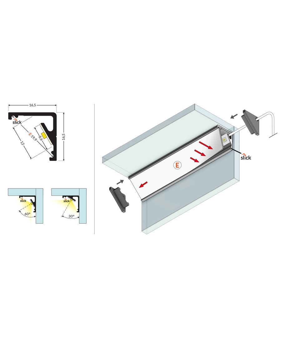 1m aluminium profiel CABI12 E is een witgelakte hoek-LED-profiel ontworpen voor kwaliteitsverlichting.