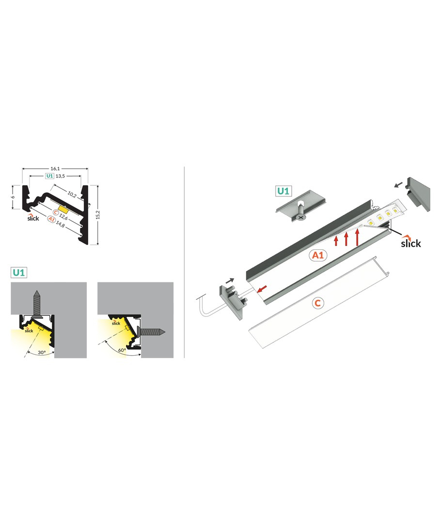 1m aluminium profiel CORNER10.V2 A1C/U1