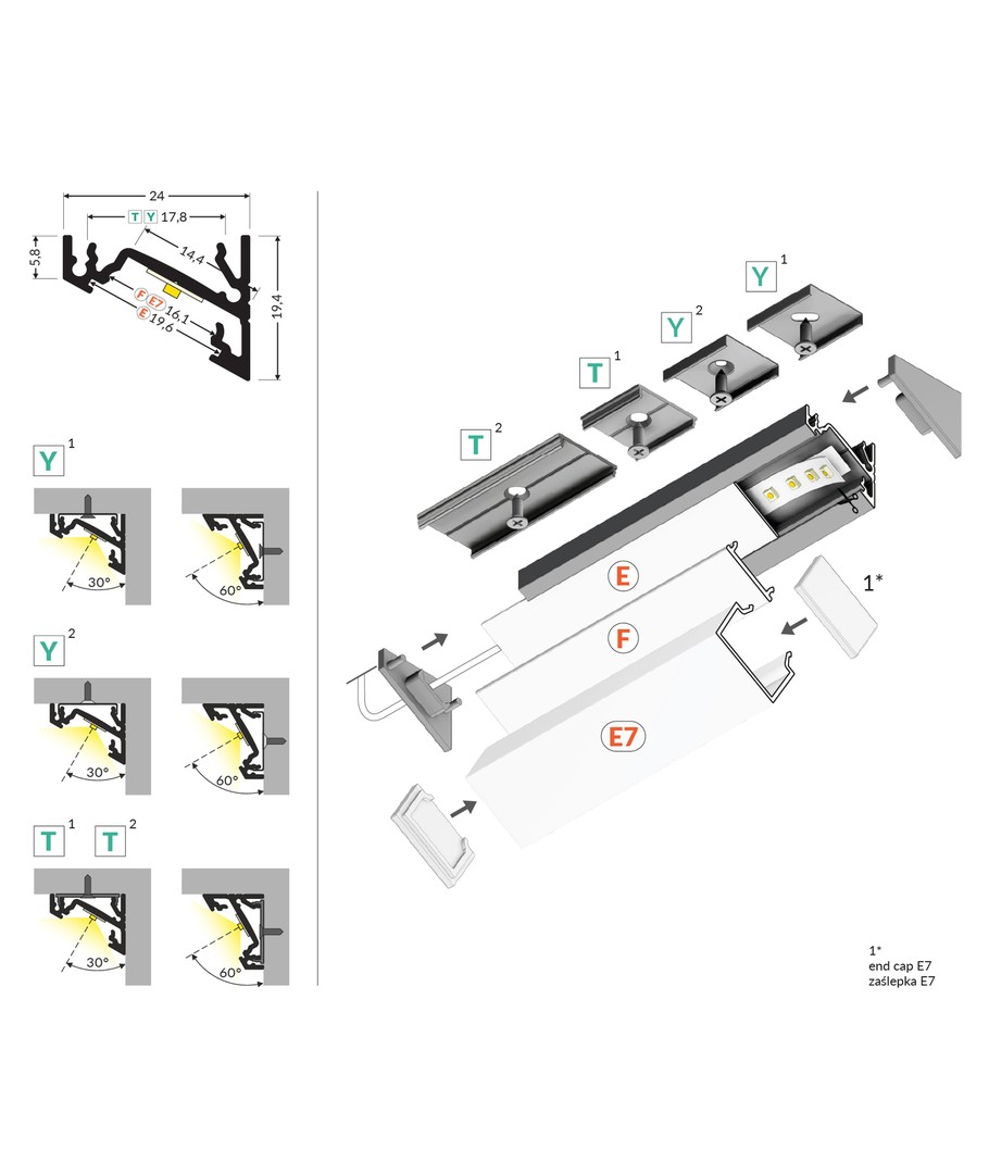 1m aluminium profiel CORNER14 EE7F/TY