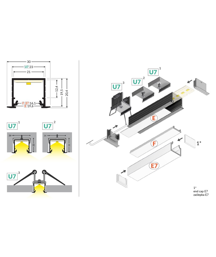1m aluminiumprofiel LINEA-IN20 EE7F/U7