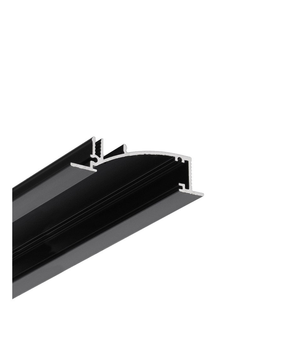 1m aluminium profiel FLAT8 H/UX - Zwart geanodiseerd is een veelzijdige en duurzame ingebouwde LED-profiel in zwart geanodiseerd aluminium.