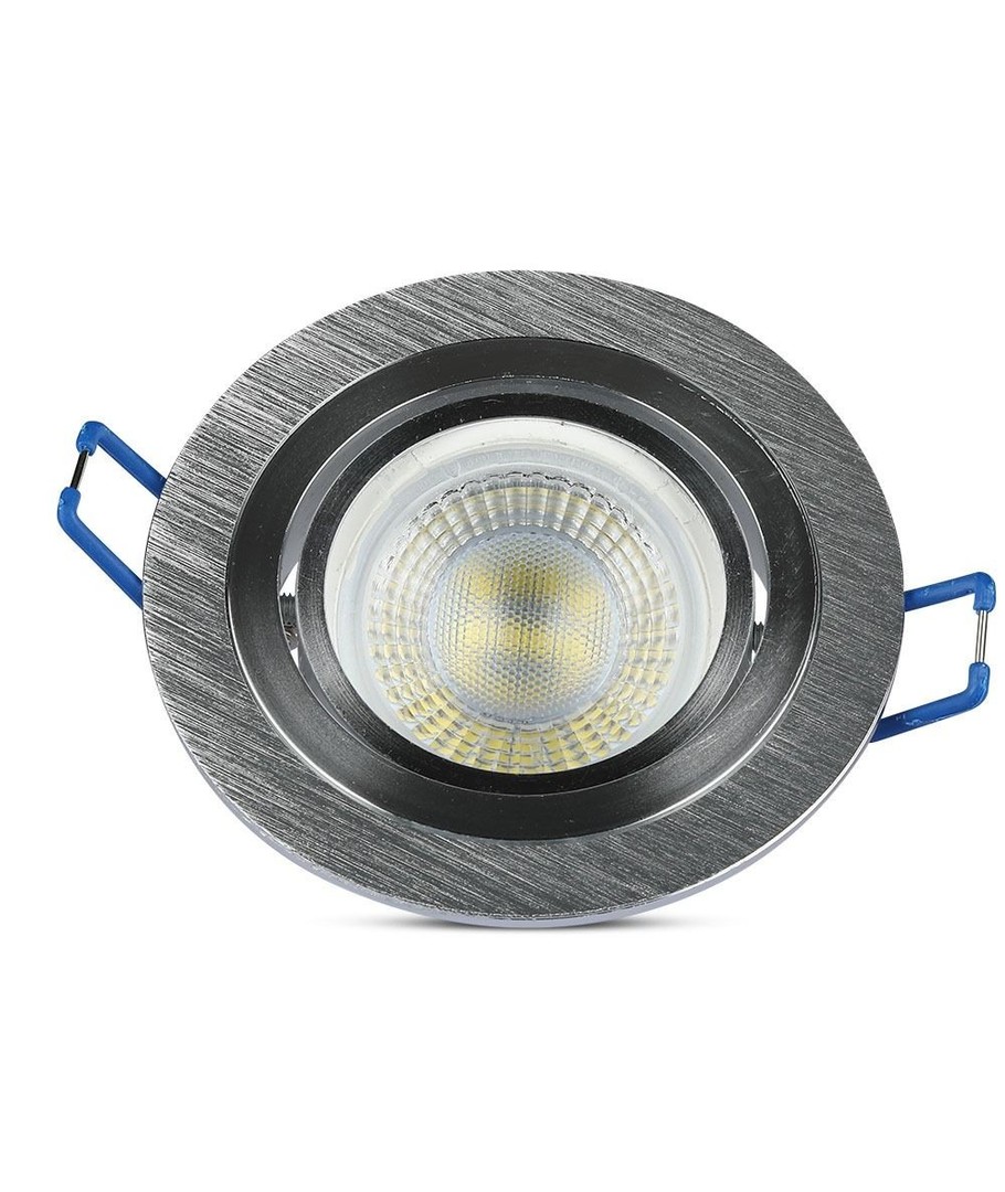Downlightset in geborsteld aluminium.