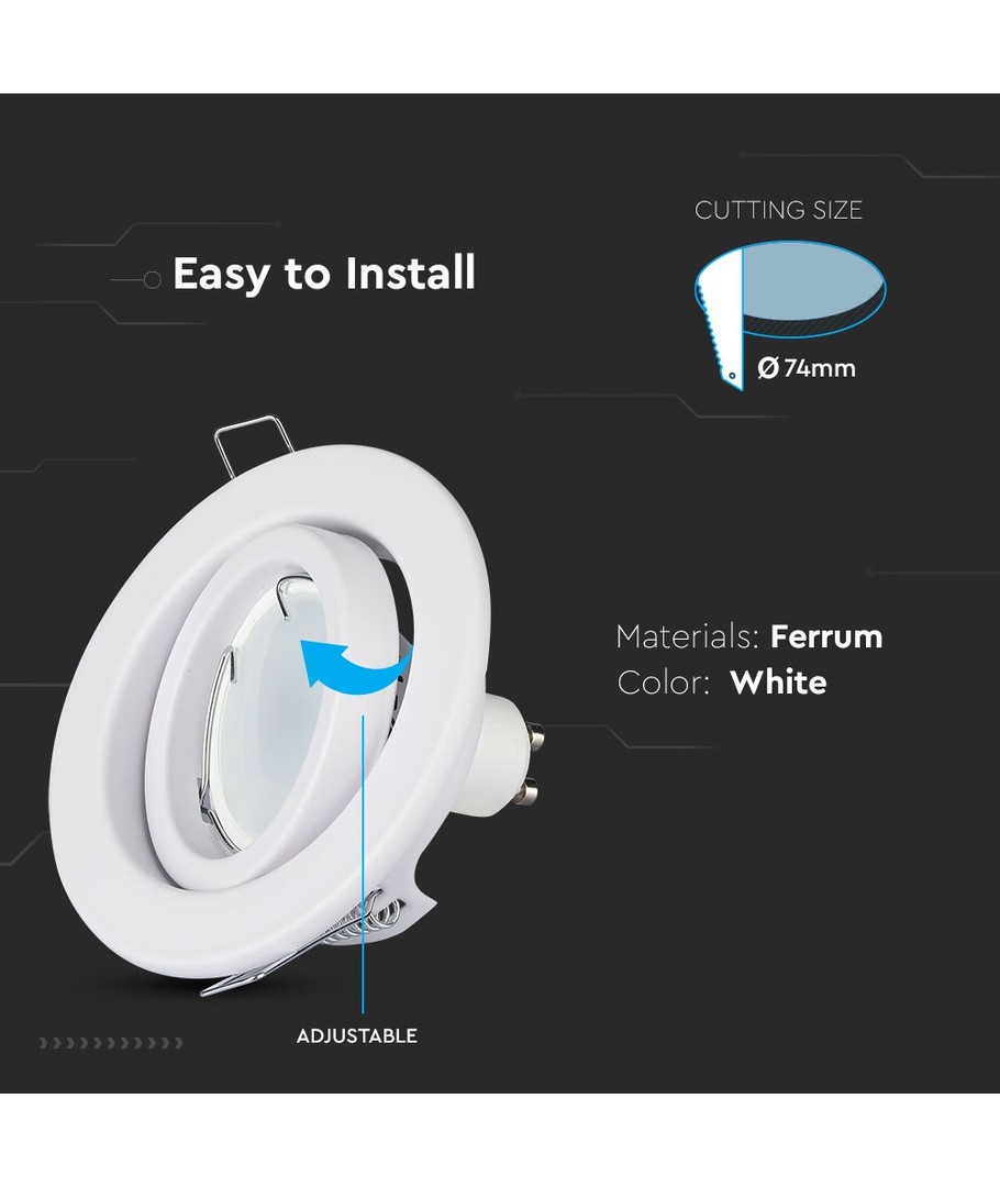 Deze stijlvolle MR16 of GU10 Downlight kit is ontworpen om je flexibiliteit en elegantie te bieden in je verlichtingsomgeving zonder concessies te doen aan functionaliteit.