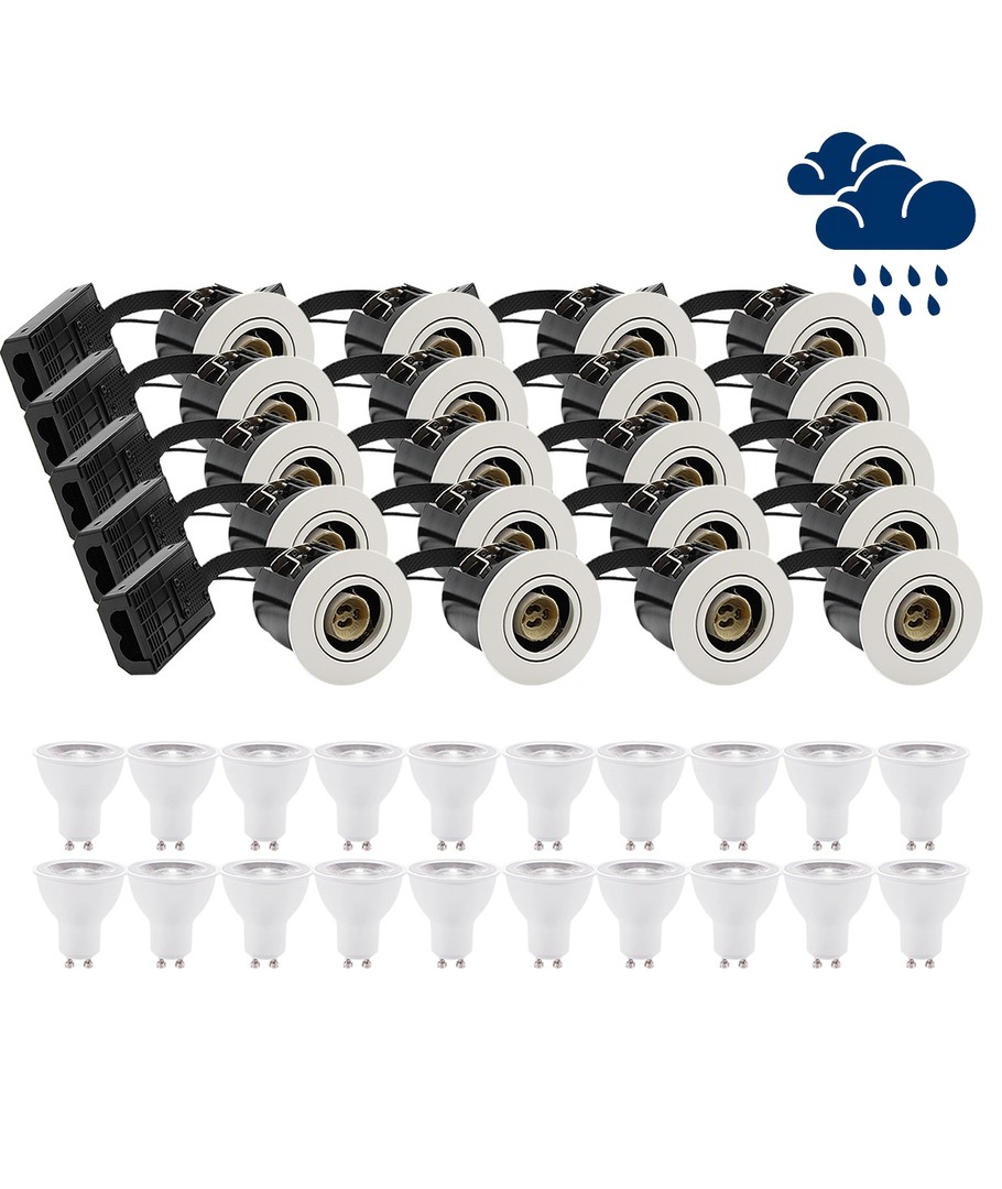 20 stuks buiten inbouwspots inclusief 6W niet dimbare LED-lampen.