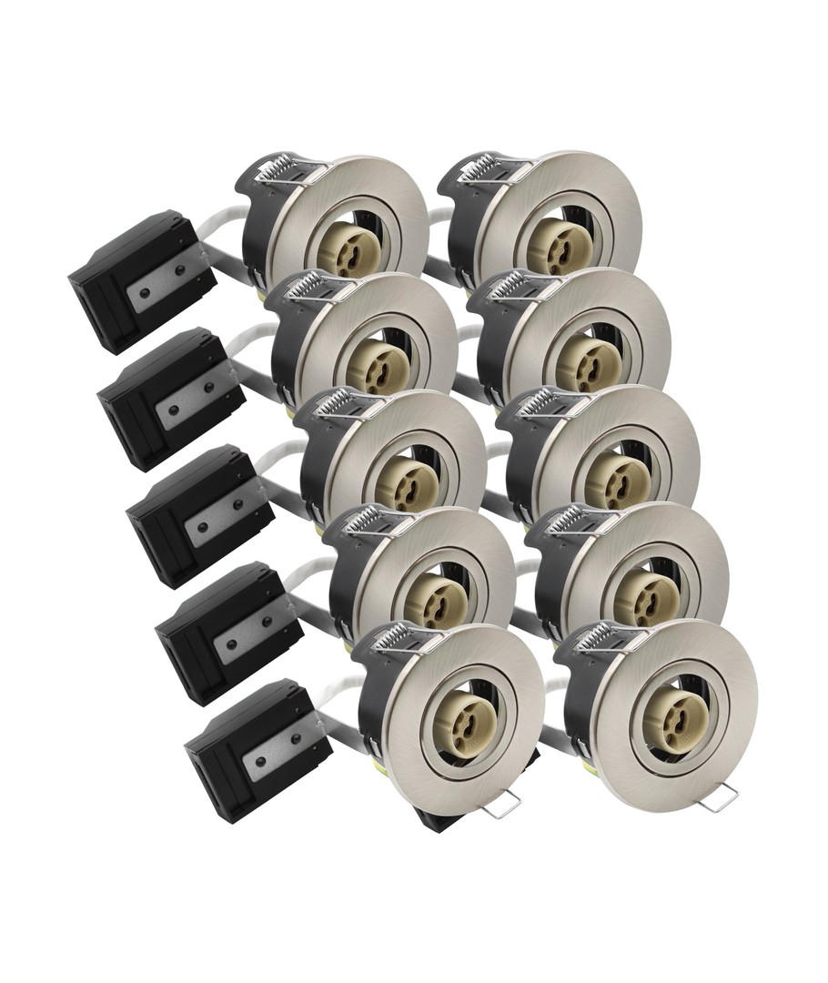 Set van 10 stuks V-Tac inbouwspots in satijn nikkel met GU10 fitting.