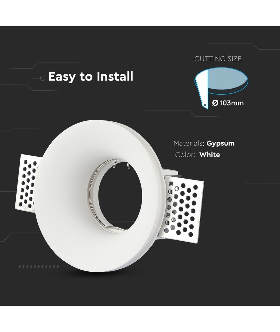 GU10 downlight voor gipsplaat-stucmontage is een elegante en functionele oplossing voor binnenverlichting, die zorgt voor een eenvoudige en discrete installatie in uw huis.