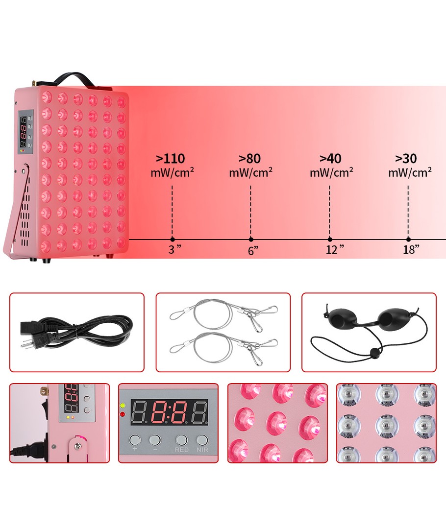 Dit komt doordat de intensiteit van het licht (de irradiantie) een cruciale rol speelt in hoe diep de energie van het licht in het lichaam doordringt. Dit betekent dat het niet voldoende is om simpelweg de blootstellingstijd voor een lichtpaneel met een lagere sterkte te verlengen. De diepte van de lichtpenetratie in het lichaam neemt niet toe met een langere tijd, maar hangt uitsluitend af van de lichtsterkte.