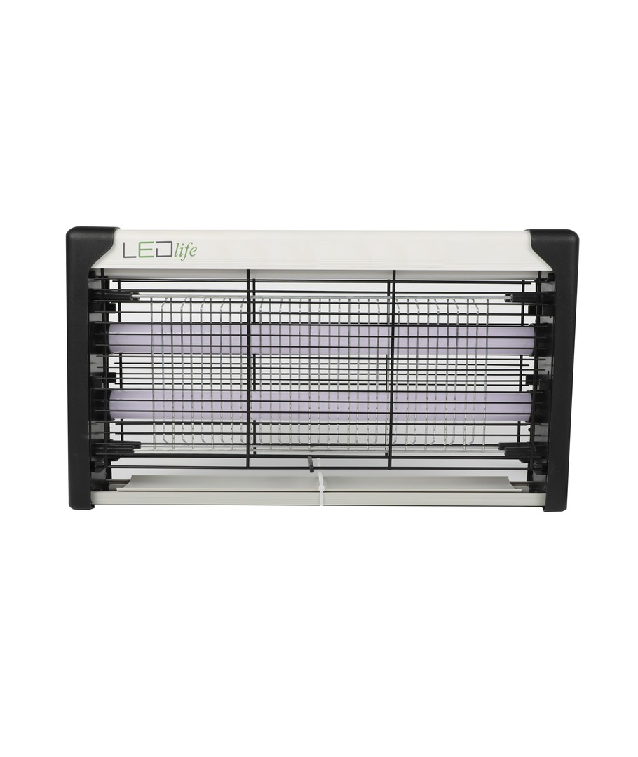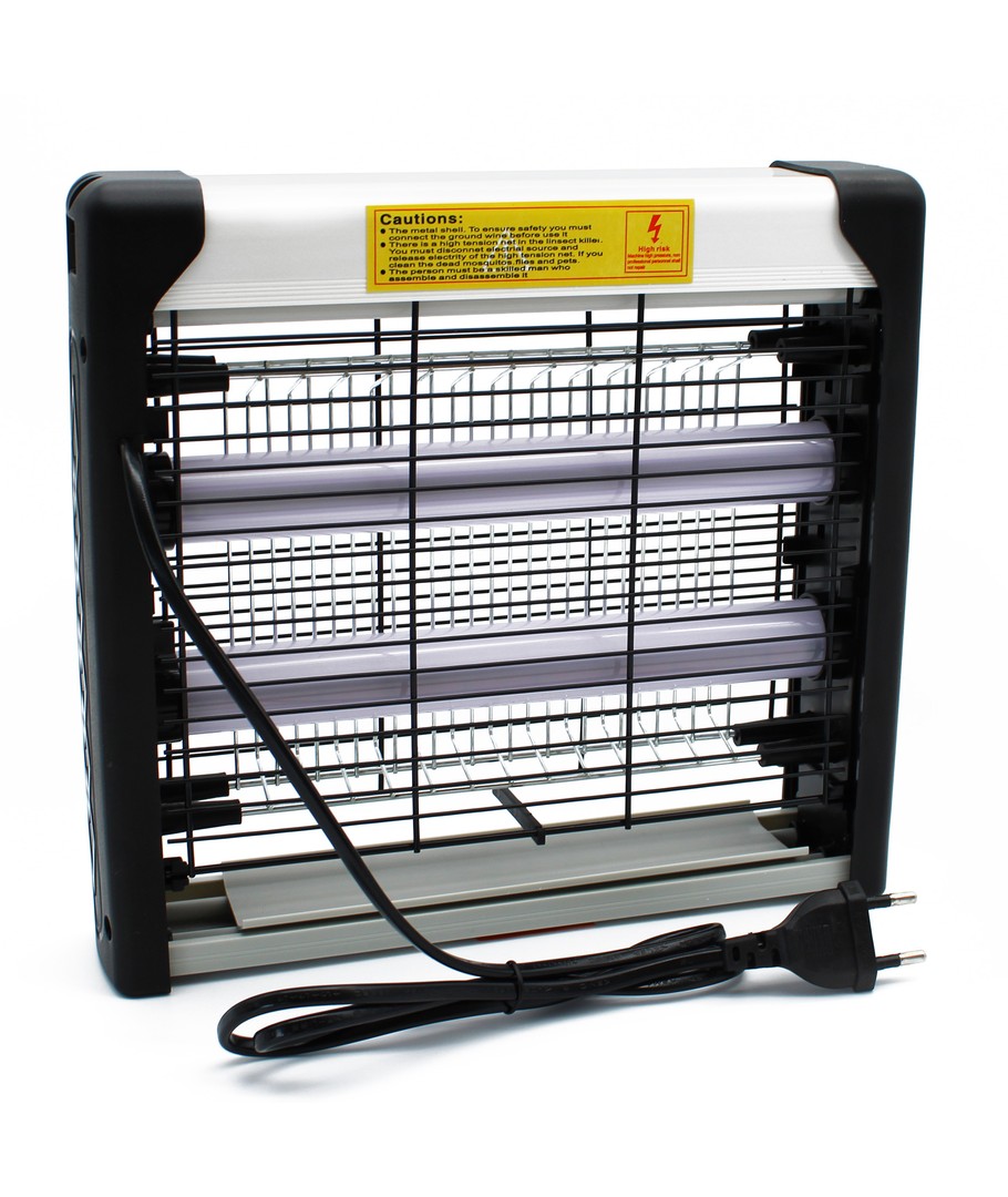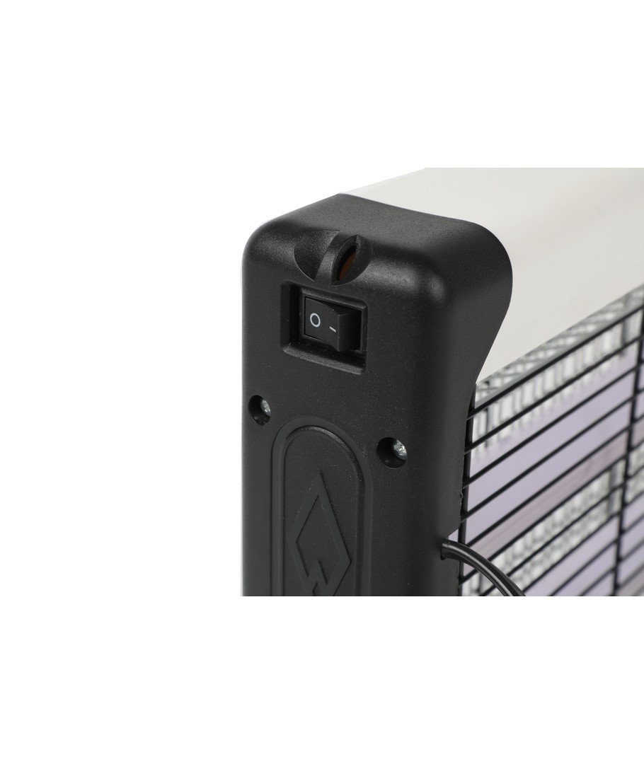 De lamp heeft ingebouwde LED's die insecten aantrekken, waarna het elektrische rooster ze doodt. Het buitenste rooster voorkomt onbedoeld contact met het elektrische rooster.