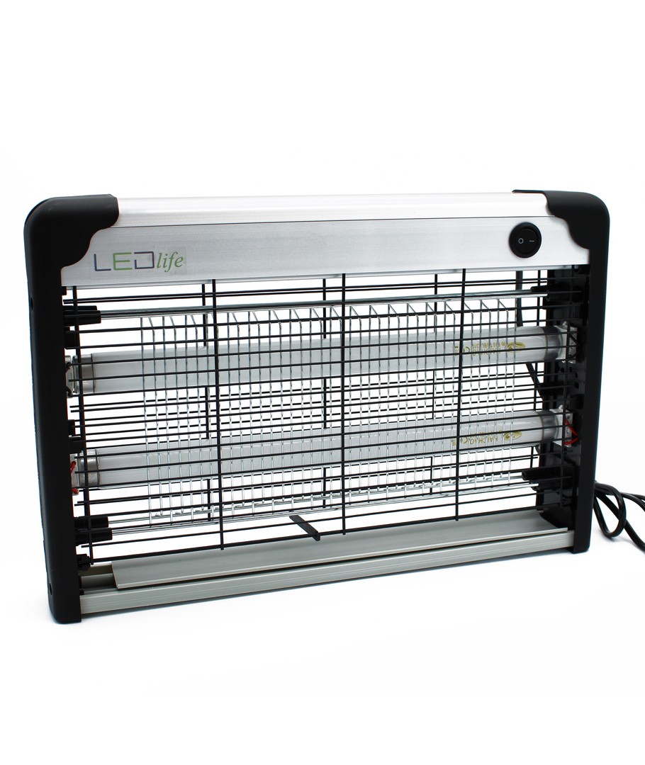 2 stuks verwisselbare UV-buizen trekken de insecten aan, waarna het elektrische rooster ze doodt. Het buitenste rooster voorkomt onbedoeld aanraken van het elektrische rooster.