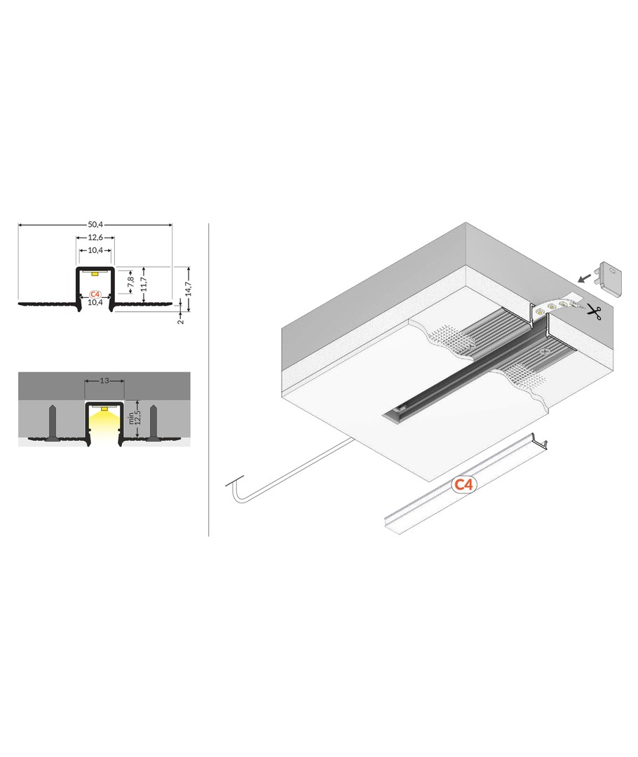1m aluminium profiel HIDE10 C4, onbehandeld aluminium voor inbouw, ontworpen voor LED strips.