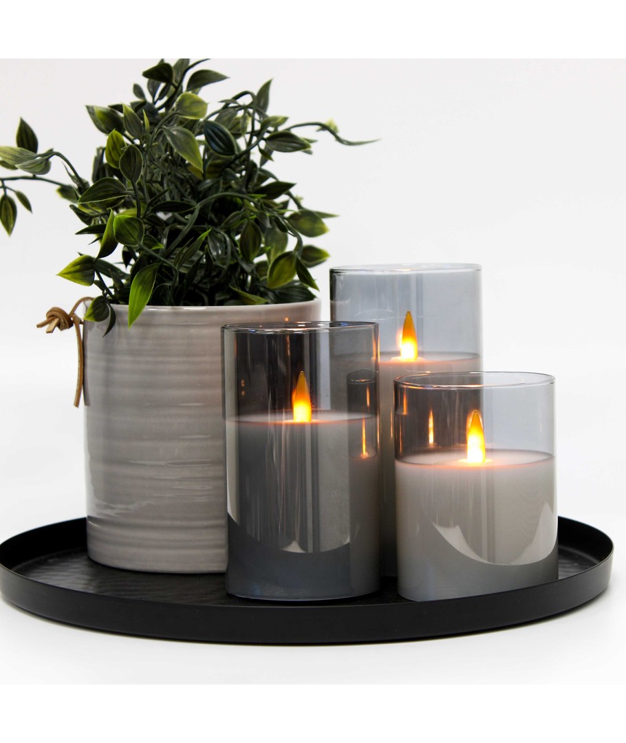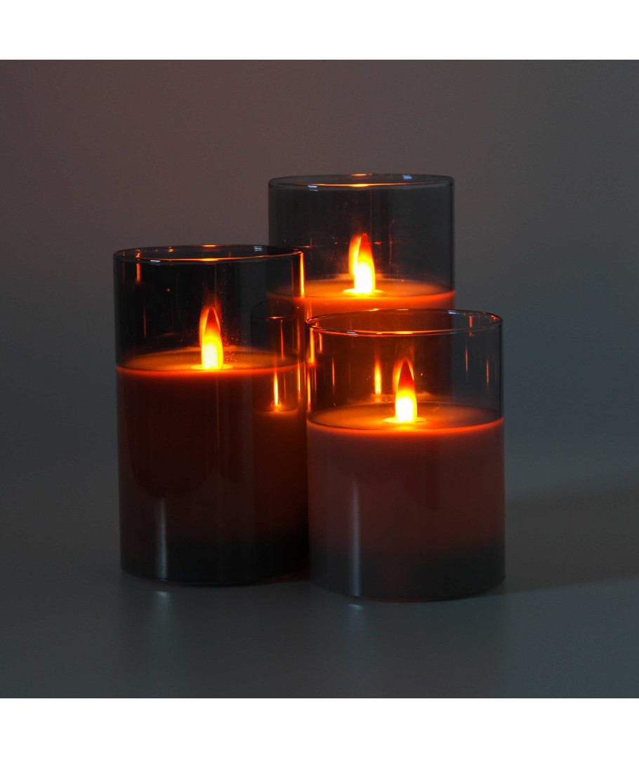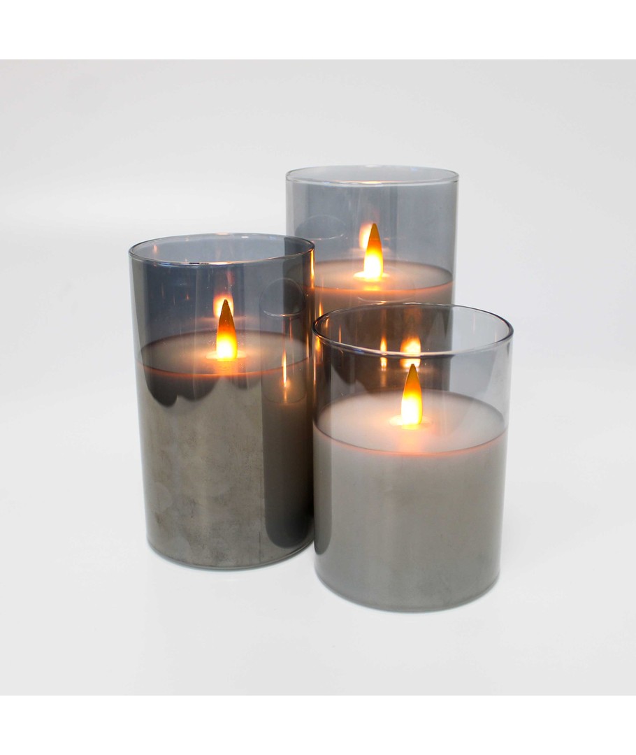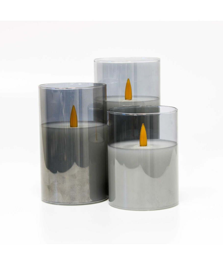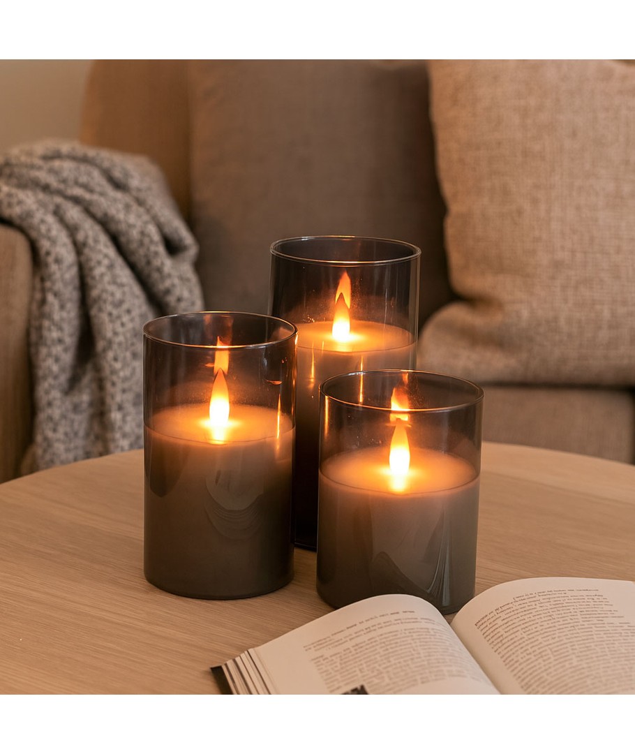 Ervaar de gezellige sfeer met onze LED Blokkaars set in rookglas, die elegantie en geborgenheid in uw huis brengt.