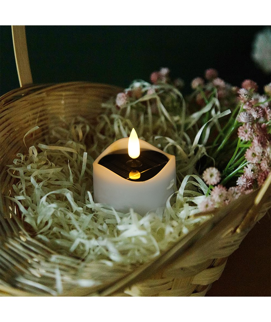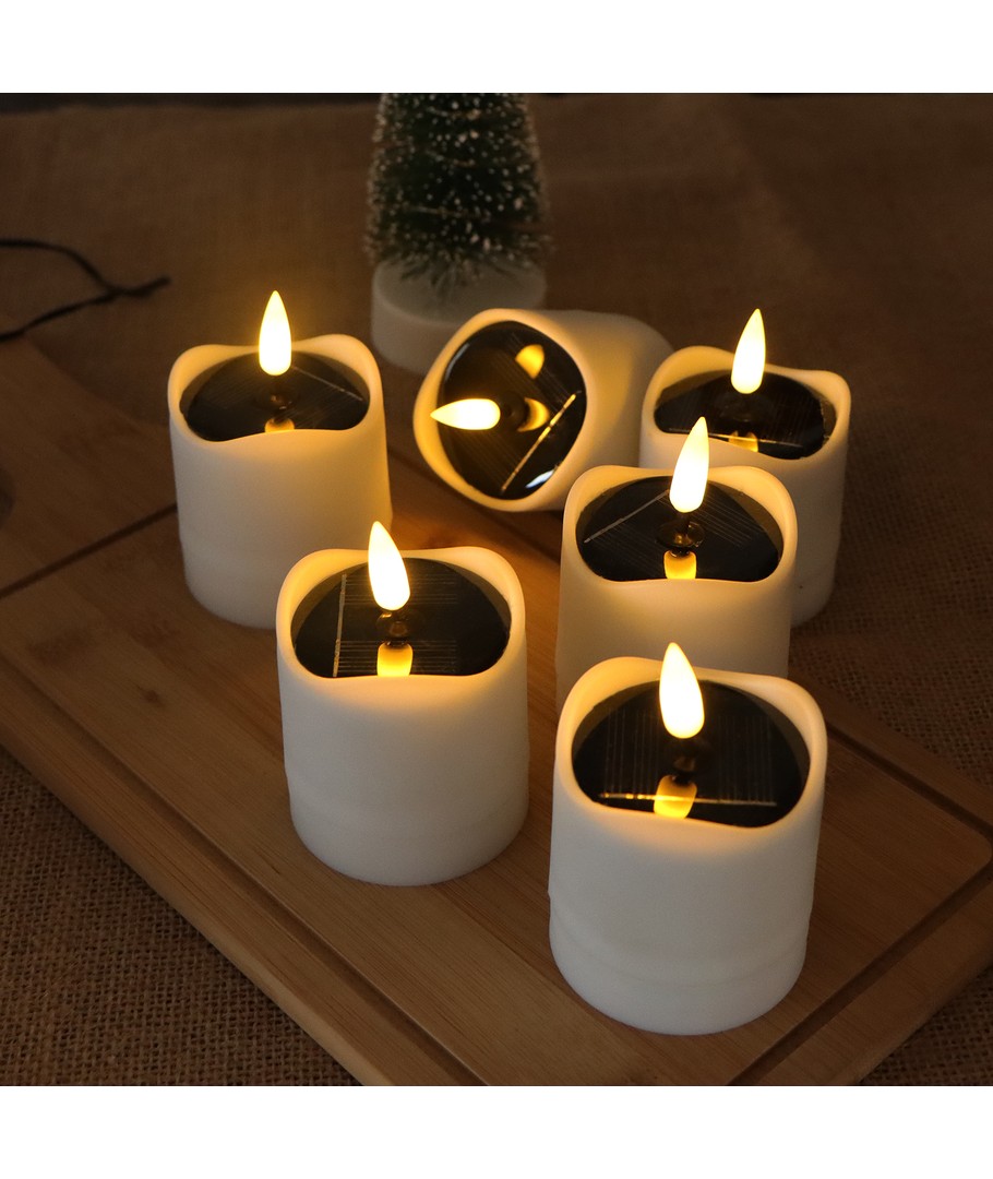 Ervaar gezellige verlichting met onze 6-pack LED zonnecel kaarsen, perfect om een warme sfeer te creëren zowel binnen als buiten.