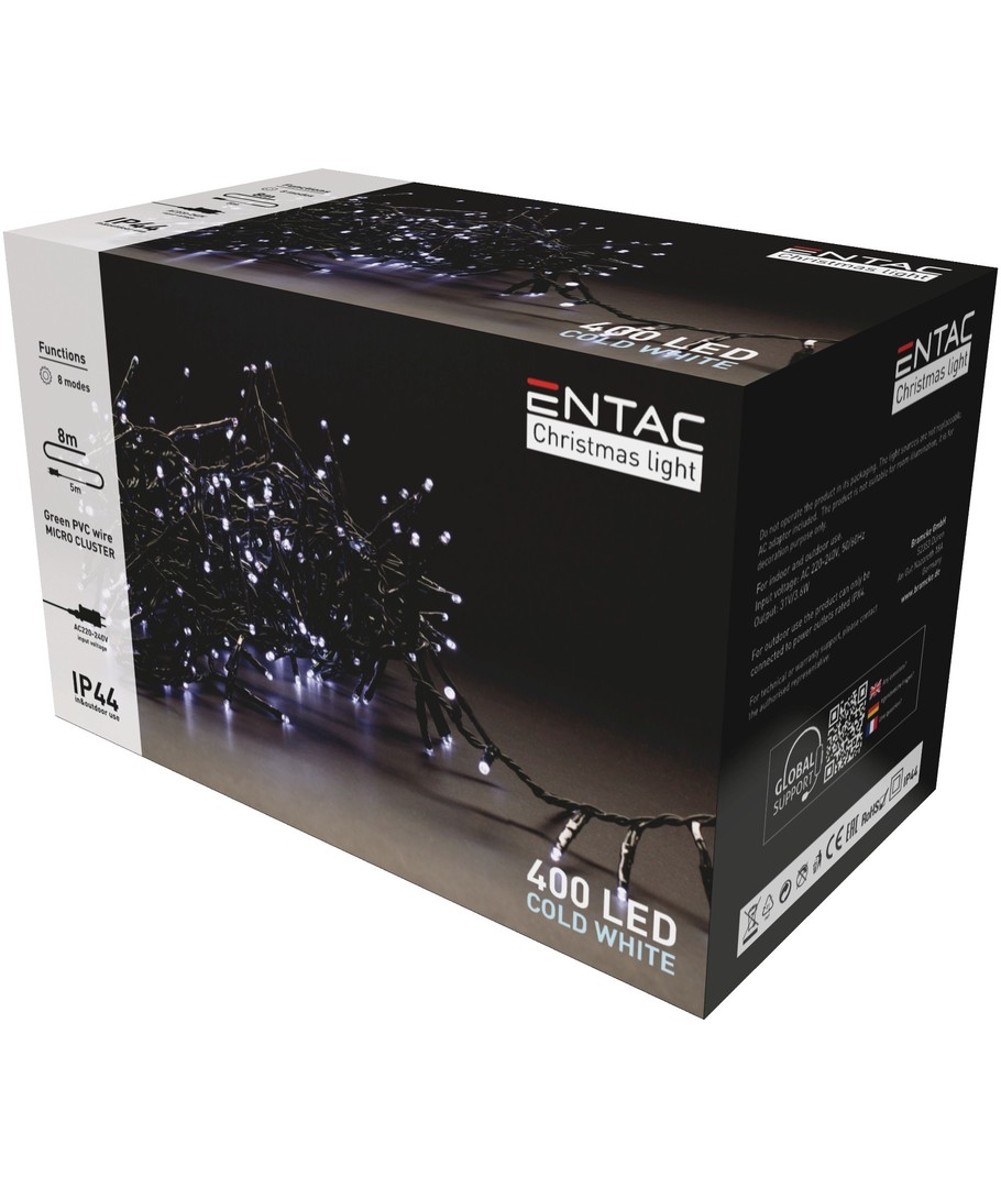 8 meter lange buiten LED cluster kerstverlichting met 400 LED's in koel wit.