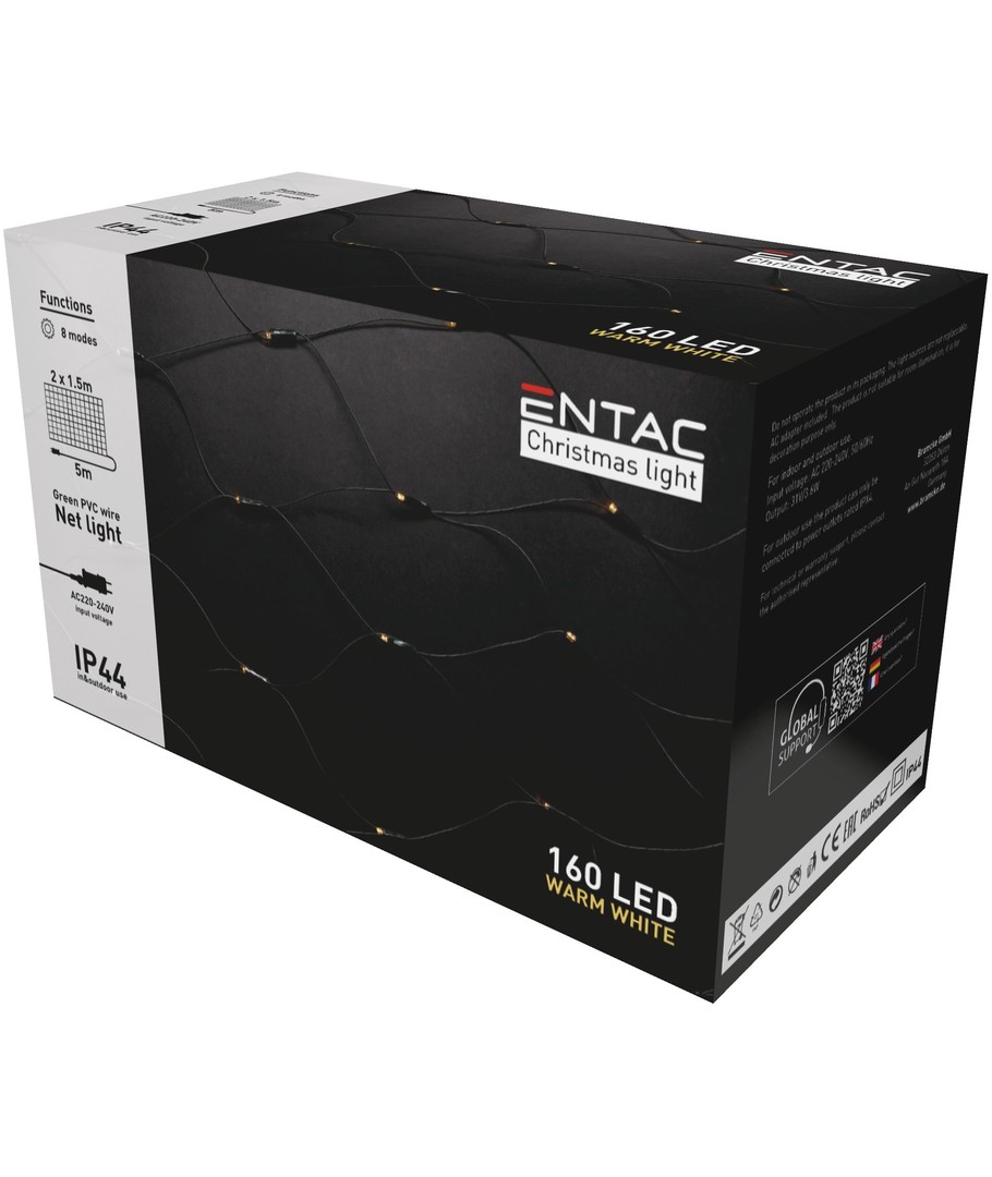 2 x 1,5 meter buiten LED kerstlichtnet met 160 LED's in warm wit.