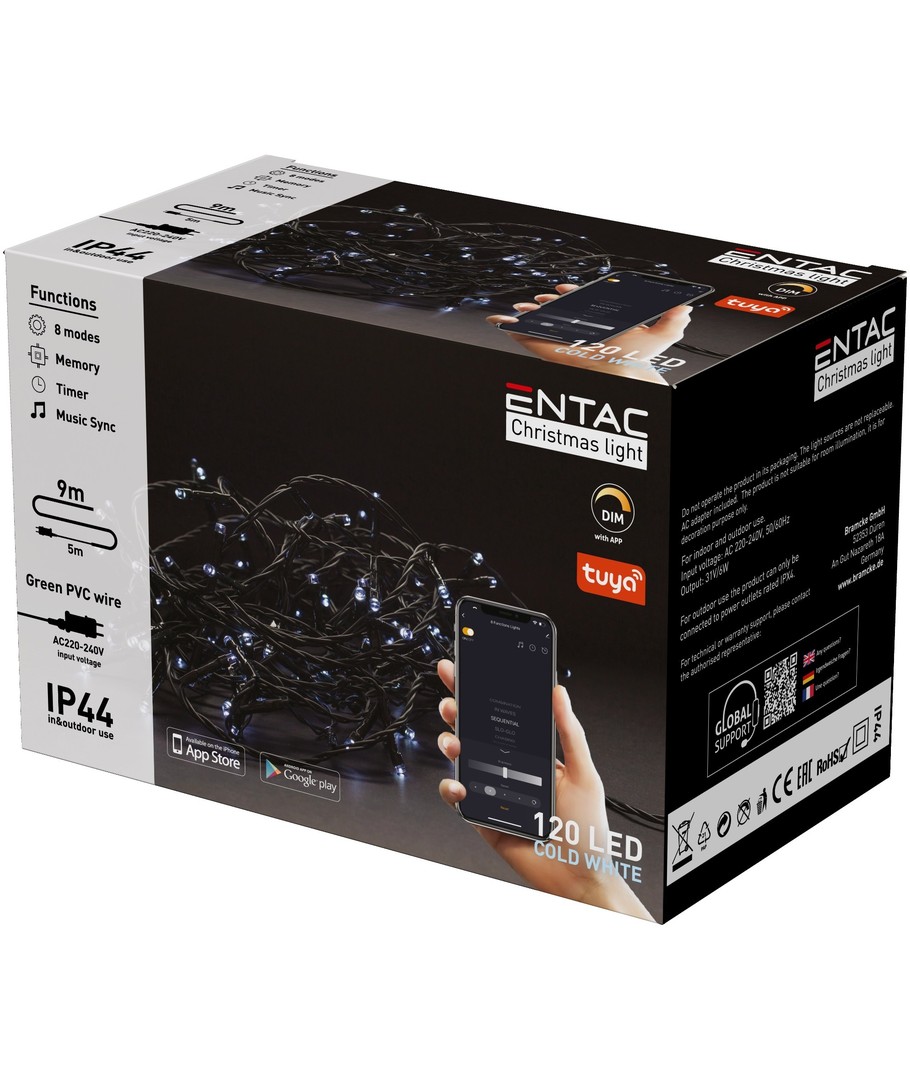 9 meter lange Smart Home buiten LED-kerstverlichting met 120 LED's in koud wit.